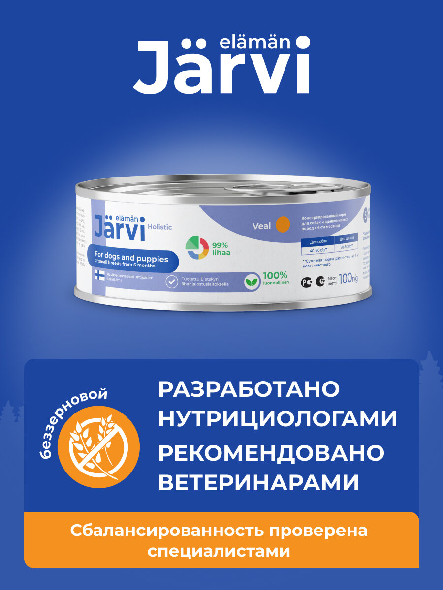 Jarvi консервы для щенков и собак малых пород (Телятина 100 г.)
