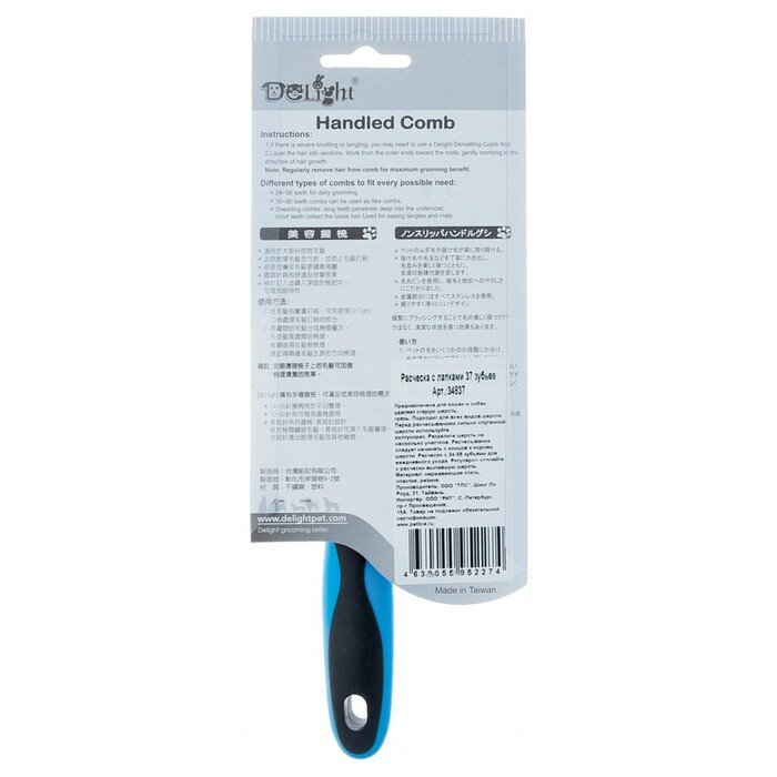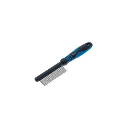 Предназначена для кошек и собак, удаляет старую шерсть, грязь. Подходит для всех видов шерсти. Перед расчесыванием сильно спутанной шерсти используйте колтунорез. Разделите шерсть на несколько участков. Расчесывание следует начинать с концов к корням шерсти. Расчески с 24-56 зубьями для ежедневного ухода. Регулярно удаляйте с расчески выпавшую шерсть.Размер:Длина ручки 121 мм.Длина рабочей области 82 мм.Зубья 37.Длина зуба 20 мм.Диаметр зуба 1. 5 мм.