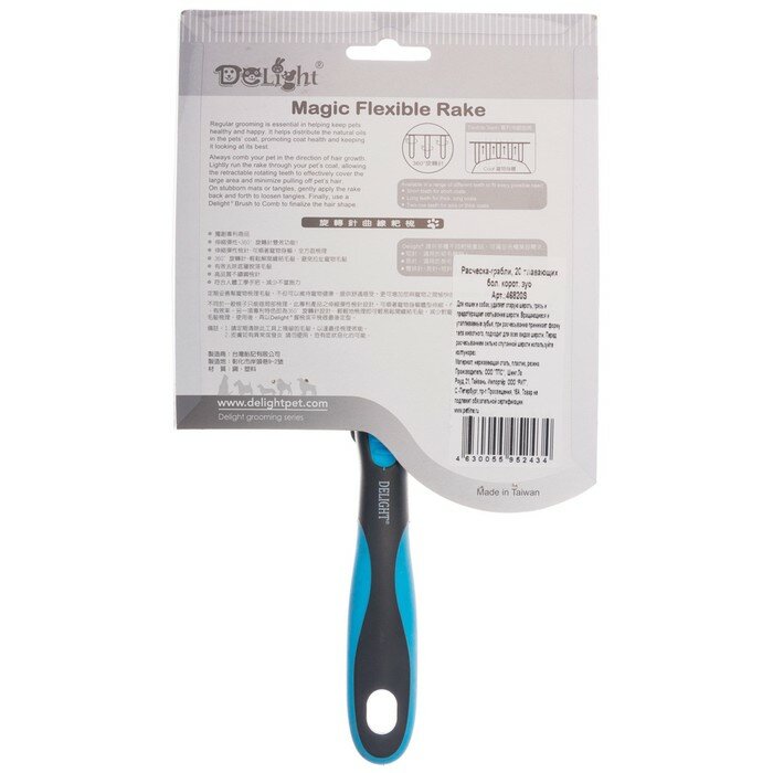 Для кошек и собак, удаляет старую шерсть, грязь и предотвращает скатывание шерсти. Вращающиеся и утапливаемые зубья, при расчесывании принимает форму тела животного, подходит для всех видов шерсти. Перед расчесыванием сильно спутанной шерсти используйте колтунорез.Материал: нержавеющая сталь, пластик, резина.