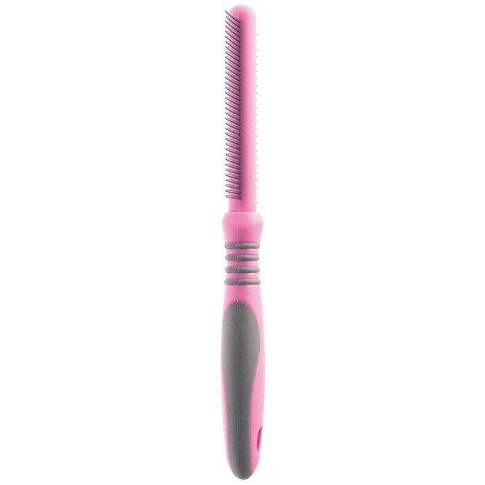 Расческа DeLIGHT ROSE с "кольцами" двухсторонняя предназначена для кошек и собак и обеспечивает качественный уход за шерстью. Она удаляет старую шерсть и грязь, подходит для всех видов шерсти и может использоваться для ежедневного груминга.Расческа оснащена 24/37 металлическими зубьями длиной 25/25 мм и диаметром 1.5 мм, что позволяет эффективно расчесывать шерсть, не повреждая ее. Зубья расположены таким образом, что расчесывание следует начинать с концов к корням шерсти, что облегчает процесс и делает его более комфортным для питомца.Длина ручки составляет 121 мм, а длина рабочей области – 81,5 / 82 мм, что обеспечивает удобство использования и позволяет легко добраться до самых труднодоступных мест.Расческа выполнена в розовом и сером цветах, что делает ее привлекательной и стильной. В комплекте идет одна расческа, изготовленная из металла и пластика, что гарантирует прочность и долговечность.Произведенная на Тайване, расческа DeLIGHT ROSE с "кольцами" двухсторонняя станет незаменимым помощником в уходе за шерстью вашего питомца.