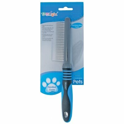 Предназначена для кошек и собак, удаляет старую шерсть, грязь. Подходит для всех видов шерсти. Перед расчесыванием сильно спутанной шерсти используйте колтунорез. Разделите шерсть на несколько участков. Расчесывание следует начинать с концов к корням шерсти. Расческа с 90 зубьями для ежедневного ухода. Регулярно удаляйте с расчески выпавшую шерсть. Материал: нержавеющая сталь, пластик, резина.