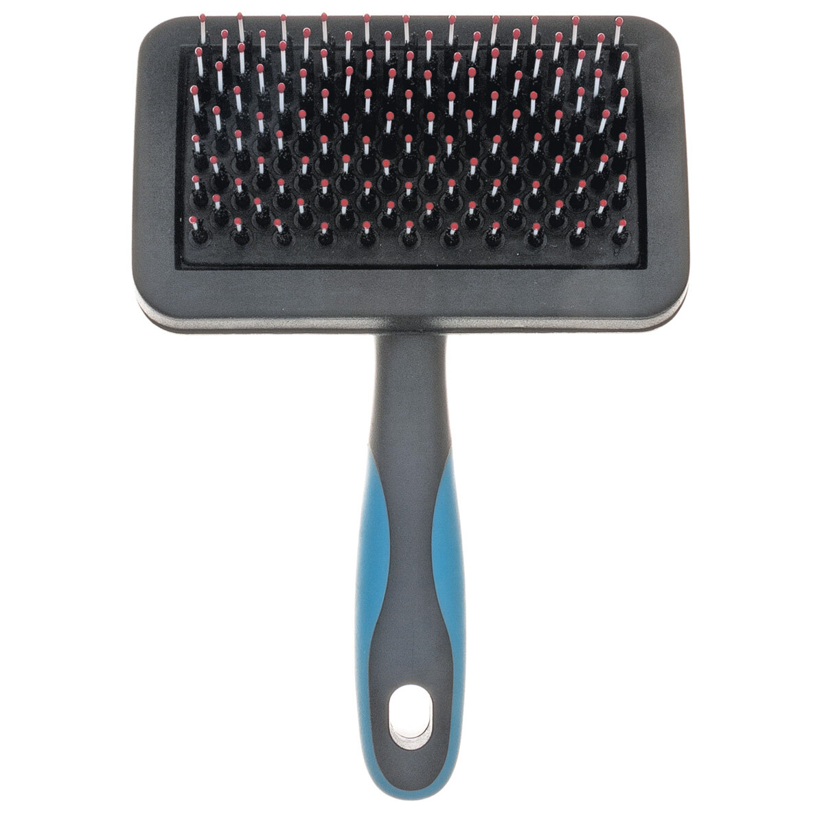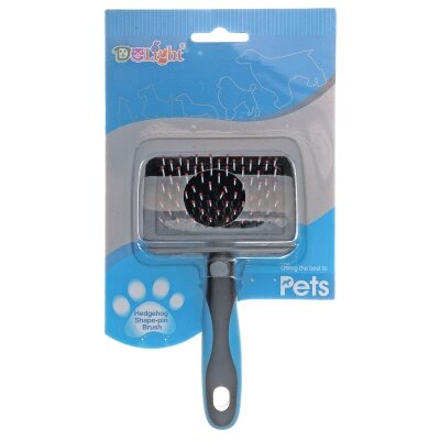 Щетка для животных " Ежик", предназначена для расчесывания кошек и собак с любым типом шерсти, используется как щетка так и расческа.Придает шерсти здоровый и пушистый вид, удаляет старую шерсть и грязь. Эргономичная ручка с упорами.Если шерсть животного спутана, используйте сначала пуходерку или расческу с вращающимися зубьями. Используйте специальные щетки и пуходерки для расчесывания шерсти вокруг глаз, лап. Длина ручки 112 мм. Рабочая область 116х85мм. Длина зуба 17,4 мм. Диаметр зуба 0,71 мм.Материал: пластик, резина.