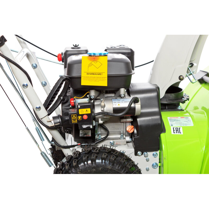 - Мощный бензиновый двигатель для зимней эксплуатации - обеспечивает высокую производительность снегоуборщика и не теряет мощность в условиях низких температур