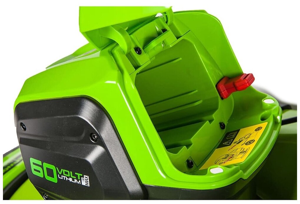 - Единая аккумуляторная система Greenworks 60V - позволяет использовать один аккумулятор с различным электроинструментом одной серии