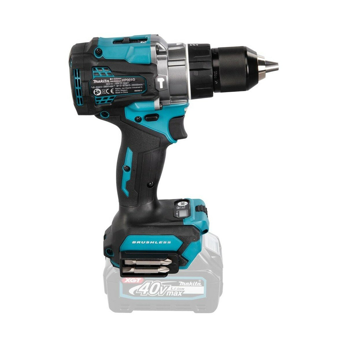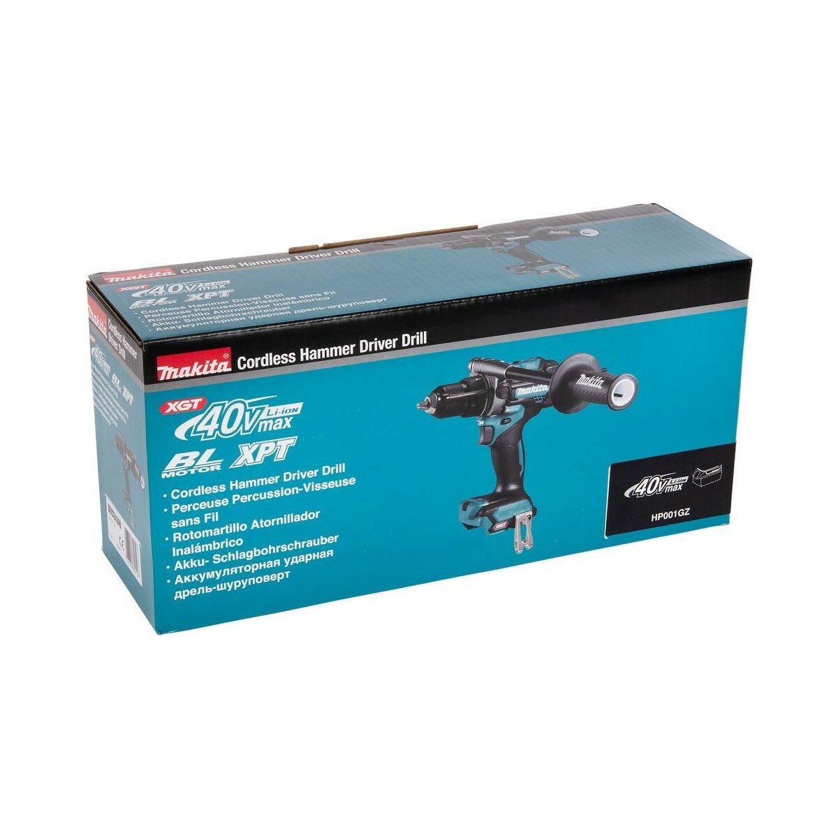 | Прочие особенности и свойства | Аккумуляторная дрель Makita XGT HP001GZ подходит для выполнения тяжелых работ. Имеет 3 режима: сверление, ударное сверление, заворачивание крепежа., Долговечный бесщеточный двигатель способствует высокой производительности., Подсветка оптимально освещает рабочую область., Быстрозажимной патрон сокращает время на замену оснастки., Электронная регулировка числа оборотов позволяет подобрать оптимальную скорость в зависимости от задачи., Благодаря вращающемуся колесу в основании можно быстро установить нужный крутящий момент на цифровом дисплее. |