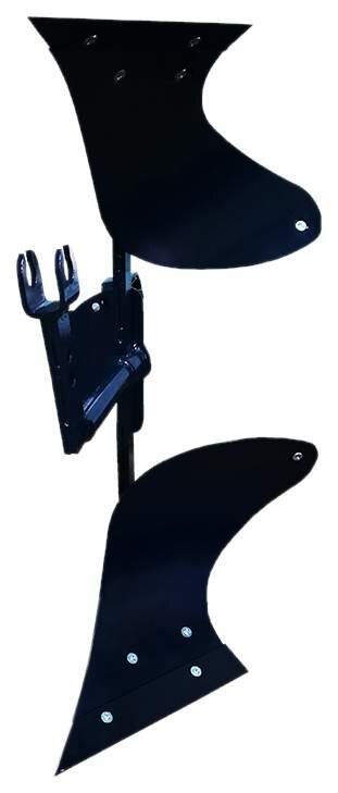 Оборотный плуг представляет собой конструкцию с двумя отвалами, расположенными на стойках зеркально относительно оси сцепа. Для фиксации корпуса в определенном положении имеется подпружный фиксатор. Во время работы один из корпусов обрабатывает почву, при этом второй корпус зафиксирован в верхнем положении. После прохода до конца участка плуг переворачивается, и работа продолжается в обратном направлении. Борозда при каждом новом проходе имеет отвал в одну сторону. Это позволяет избежать появления гребня. В результате такой обработки поверхность участка приобретает однородную и ровную структуру. Агрегат обеспечивает ширину захвата до 18 см. Глубина захвата составляет 22 см. Вес изделия - 19,4 кг.