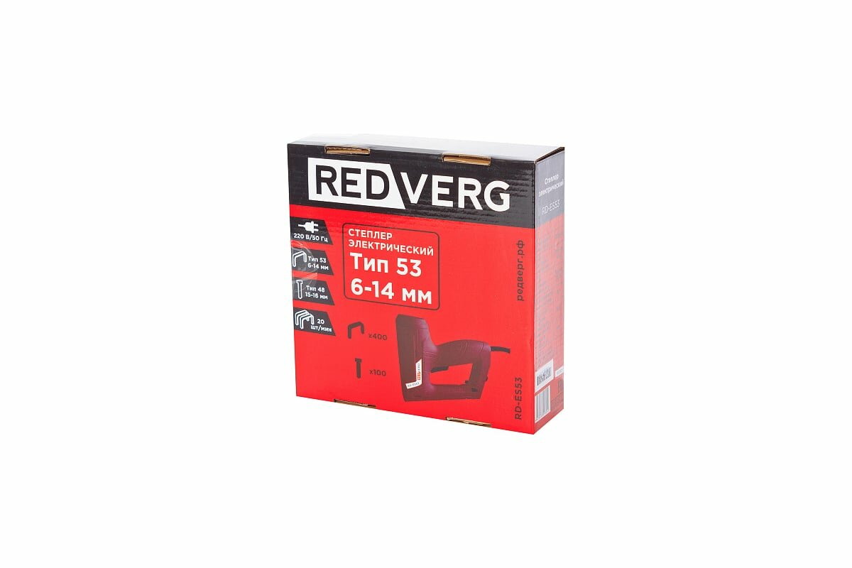 | Дополнительно | Степлер электрический REDVERG RD-ES53 предназначен для работы со скобами тип 53 8-16 мм и гвоздями тип 48 15-16 мм. |