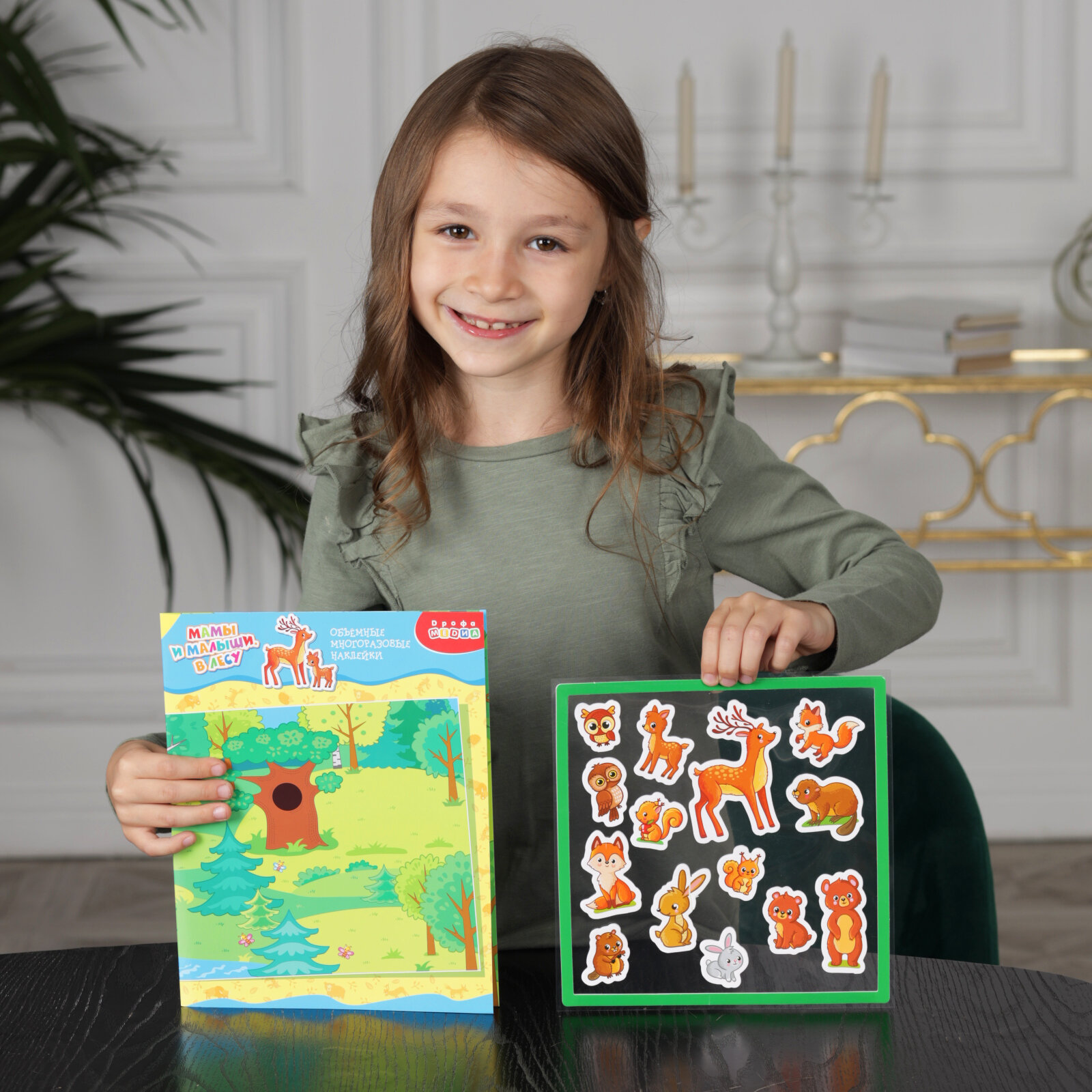 Набор для игры с объёмными многоразовыми наклейками «Мамы и малыши. В лесу» прекрасно подойдёт в качестве подарка в детском саду.
