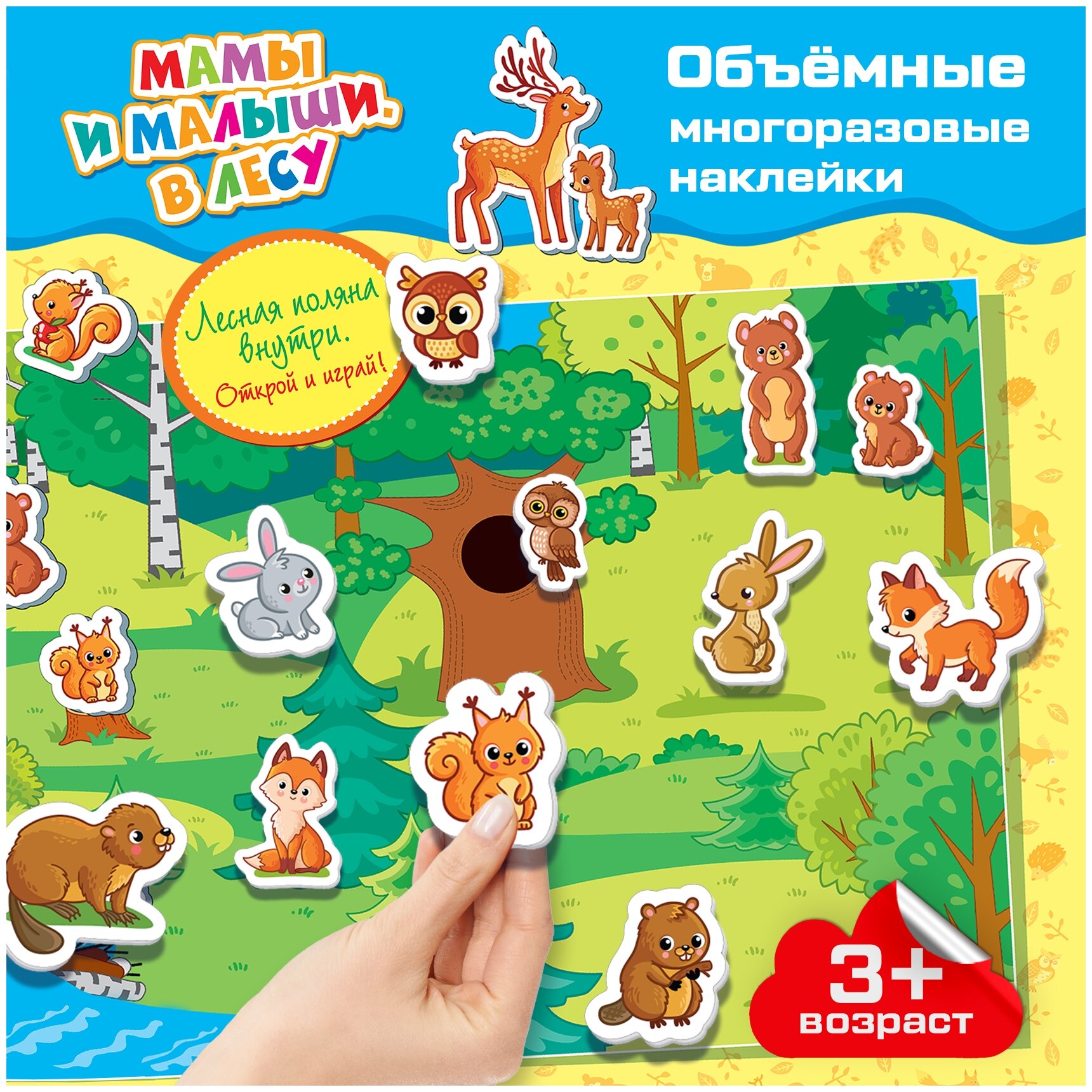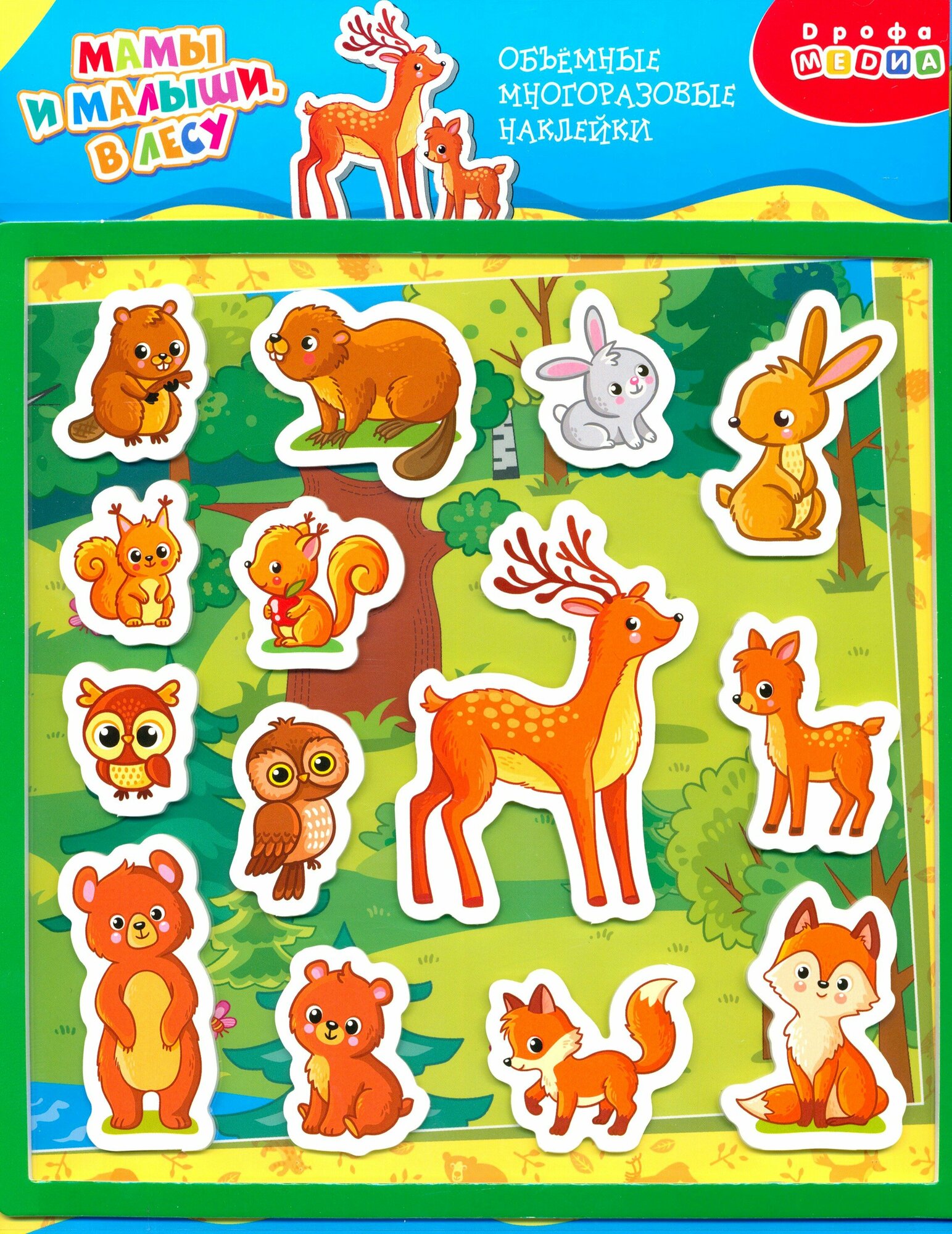 Объемные многоразовые наклейки Мамы и малыши. В лесу Дрофа Медиа