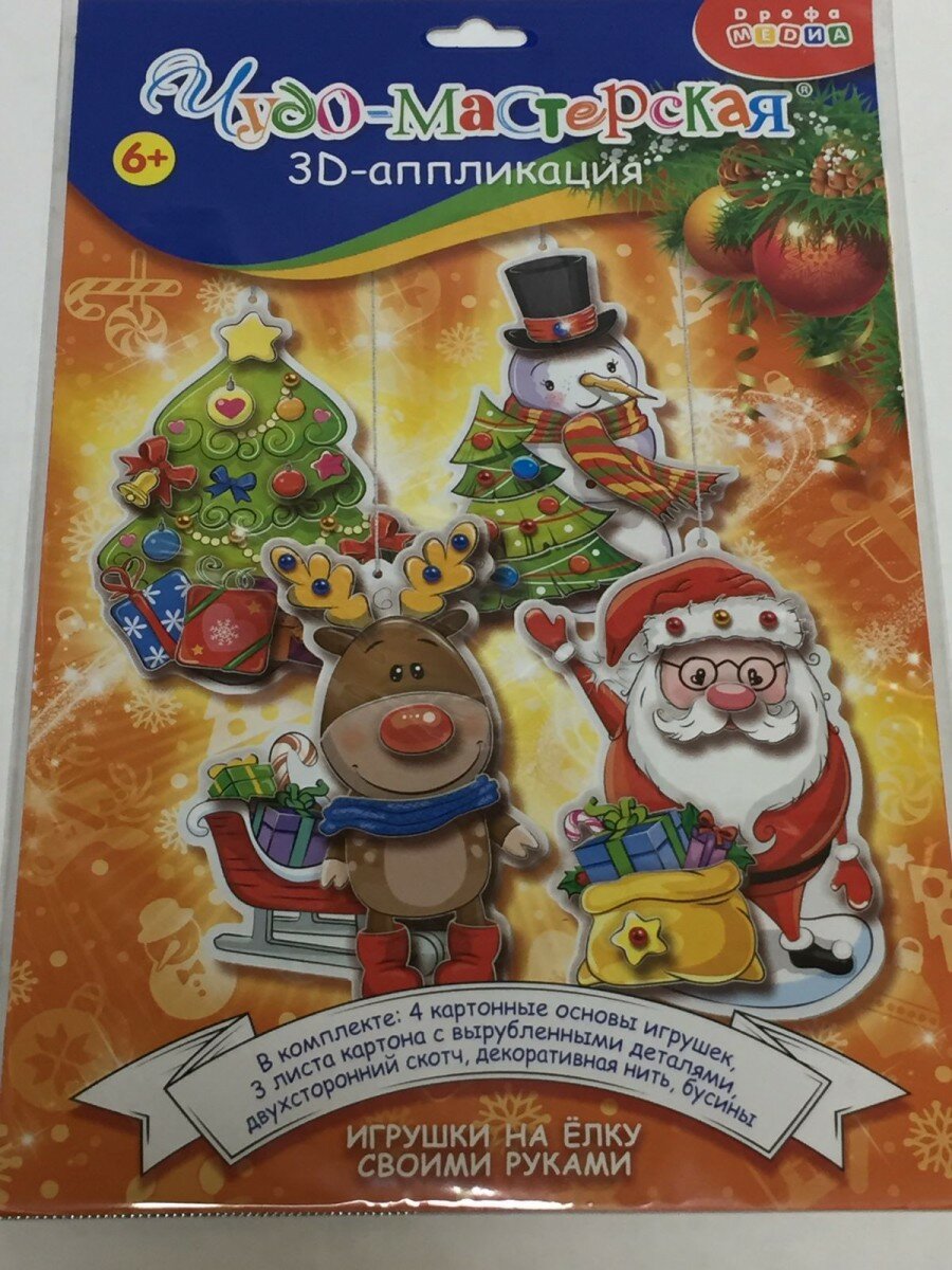 Набор для творчества помогает развивать усидчивость, логику, мелкую моторику, творческие способности и фантазию. «3D-аппликация. Новогодние игрушки своими руками» подойдёт в качестве тематической поделки или новогоднего подарка в детском саду или начальной школе.