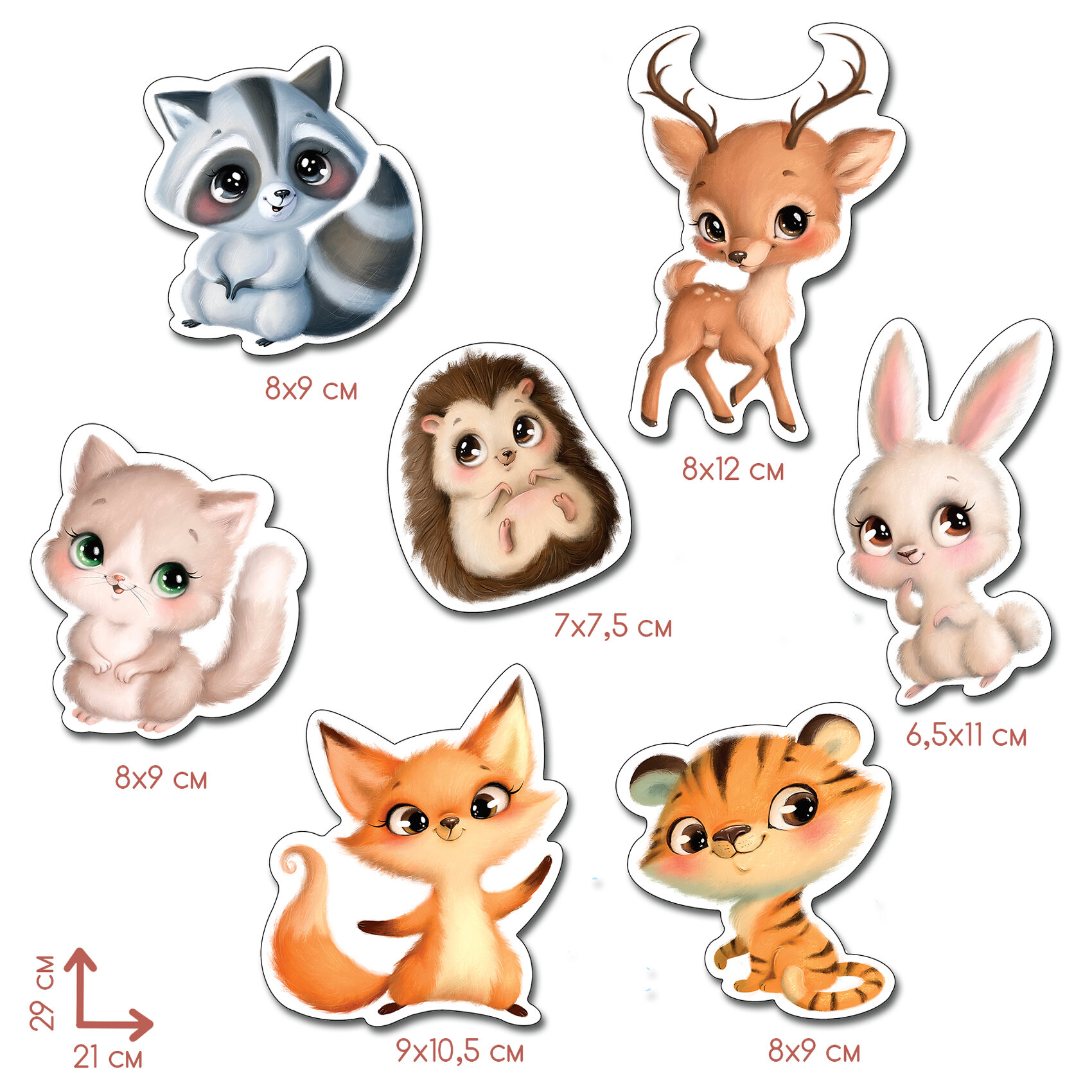 1 лист с наклейками, размер листа - 21х29 см. 7 наклеек в наборе.