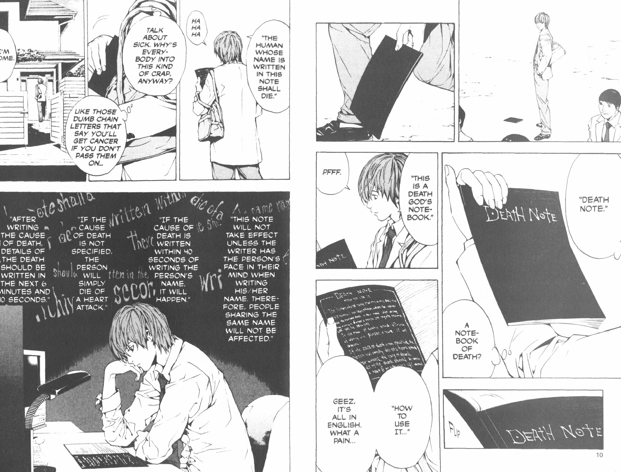 Light Yagami is an ace student with great prospects - and hes bored out of his mind. But all that changes when he finds the Death Note, a notebook dropped by a rogue Shinigami death god. Any human whose name is written in the notebook dies, and now Light has vowed to use the power of the Death Noteto rid the world of evil. But when criminals begin dropping dead, the authorities send the legendary detective L to track down the killer. With L hot on his heels, will Light lose sight of his noble goal...or his life? This contains the first two volumes of Death Note.