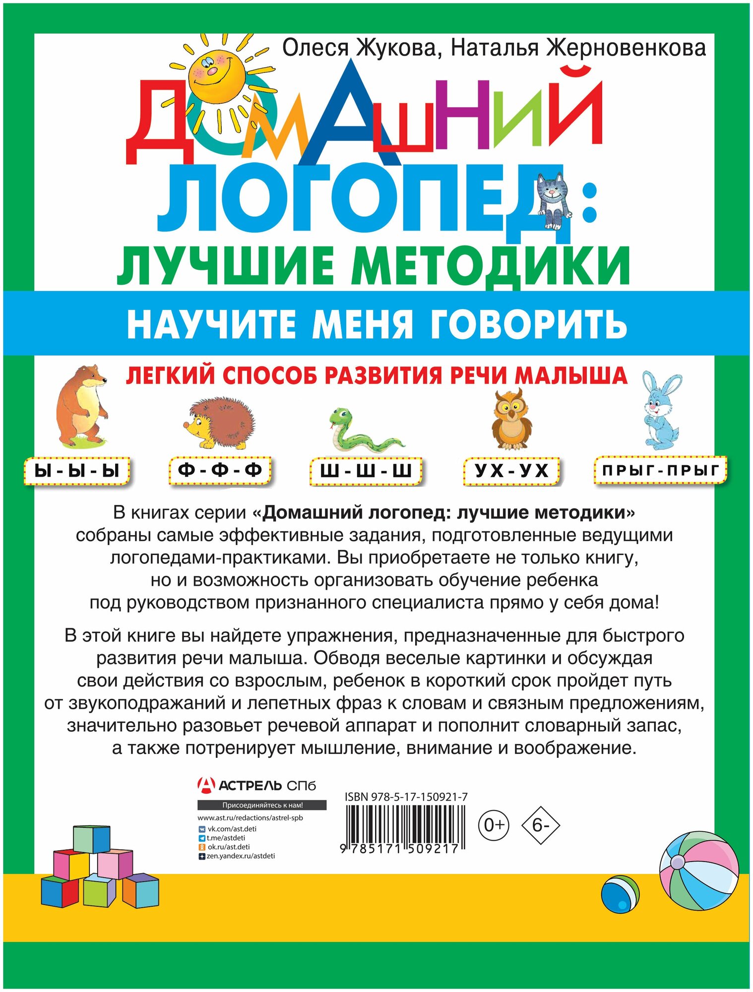 Сервис сравнения цен СкидкаГИД предлагает сравнить цены на товар «Книга: Научите меня говорить! Легкий способ развития речи малыша. Помощь родителям педагогам няням (Жукова Олеся Станиславовна, Жерновенкова Наталья Юрьевна); ИЗДАТЕЛЬСТВО "АСТ", 2022»
