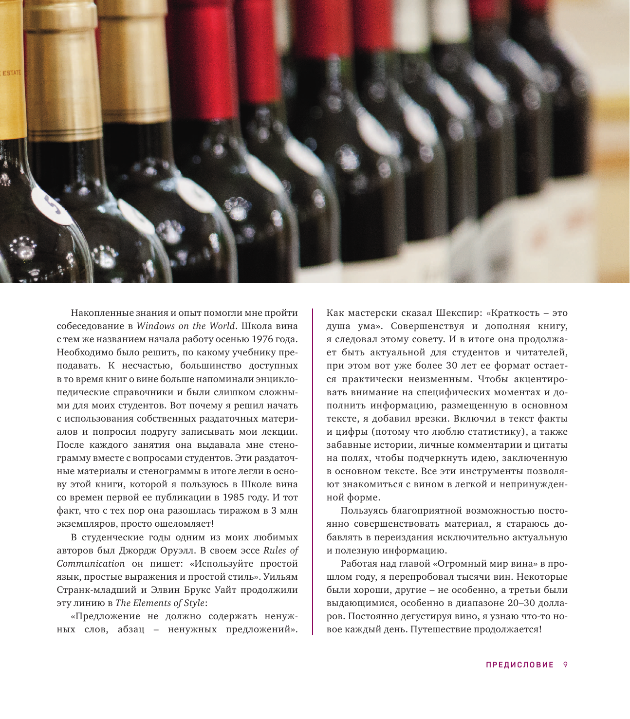 Обновляемая и дополняемая автором, уже более 30 лет она продолжает быть актуальной для студентов и читателей. Благодаря увлекательному стилю изложения эта книга стала обязательным пособием и настоящим сокровищем для тех, кто изучает вино. Он разъясняет каждый аспект: сорта винограда, методы виноделия, различные типы и стили вина, рассказывает о том, как читать винную этикетку и как оценить вино всего за 60 секунд.