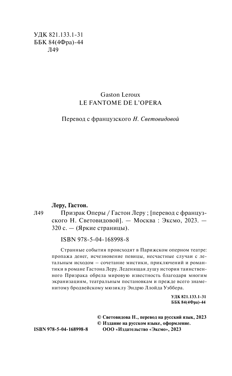 Книга: Призрак Оперы (Леру Гастон); ООО "Издательство "Эксмо", 2022