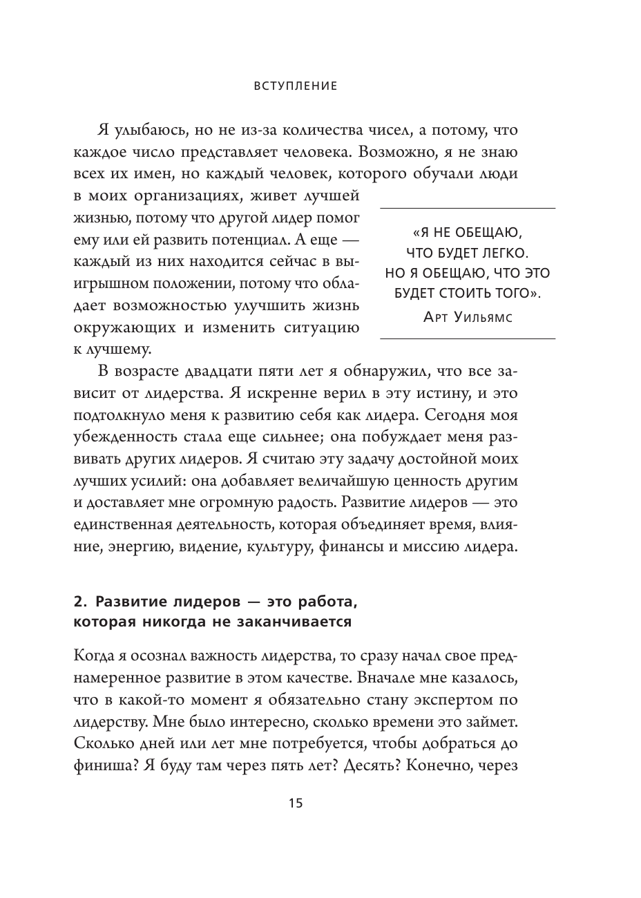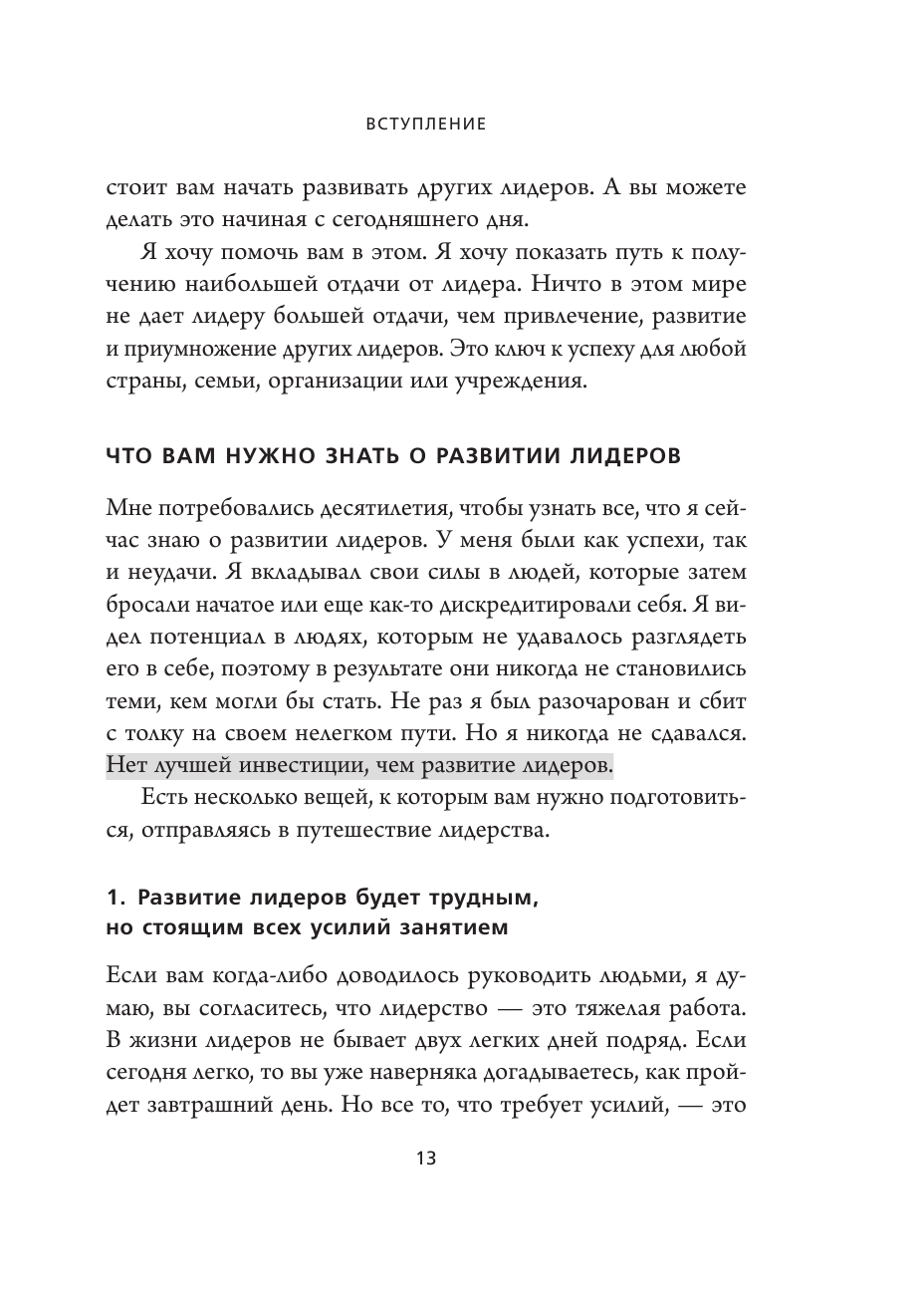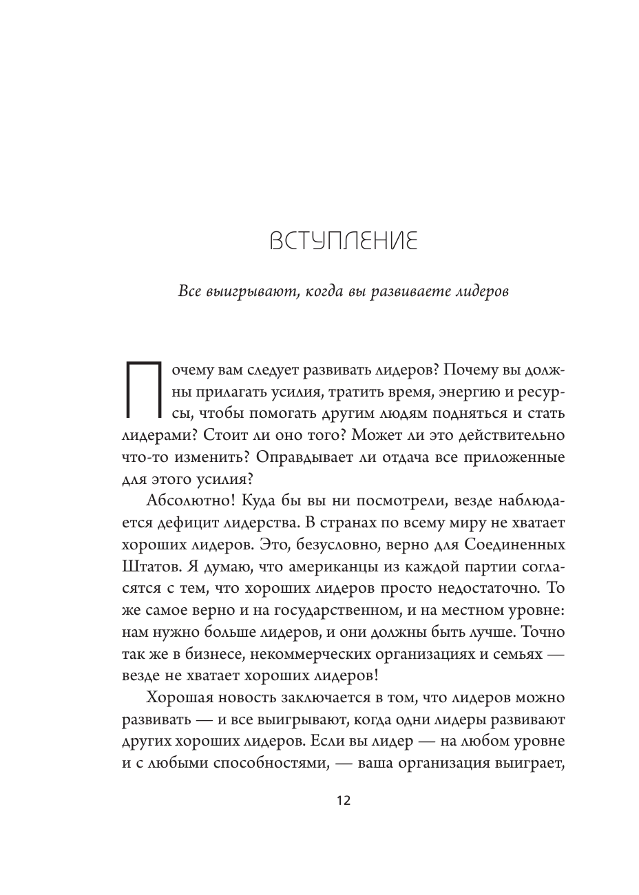 Его книга - настоящая библия подготовки лидеров. В ней вы найдете 10 ступеней развития руководителя команды и 7 мотиваторов для него, а еще узнаете, как: