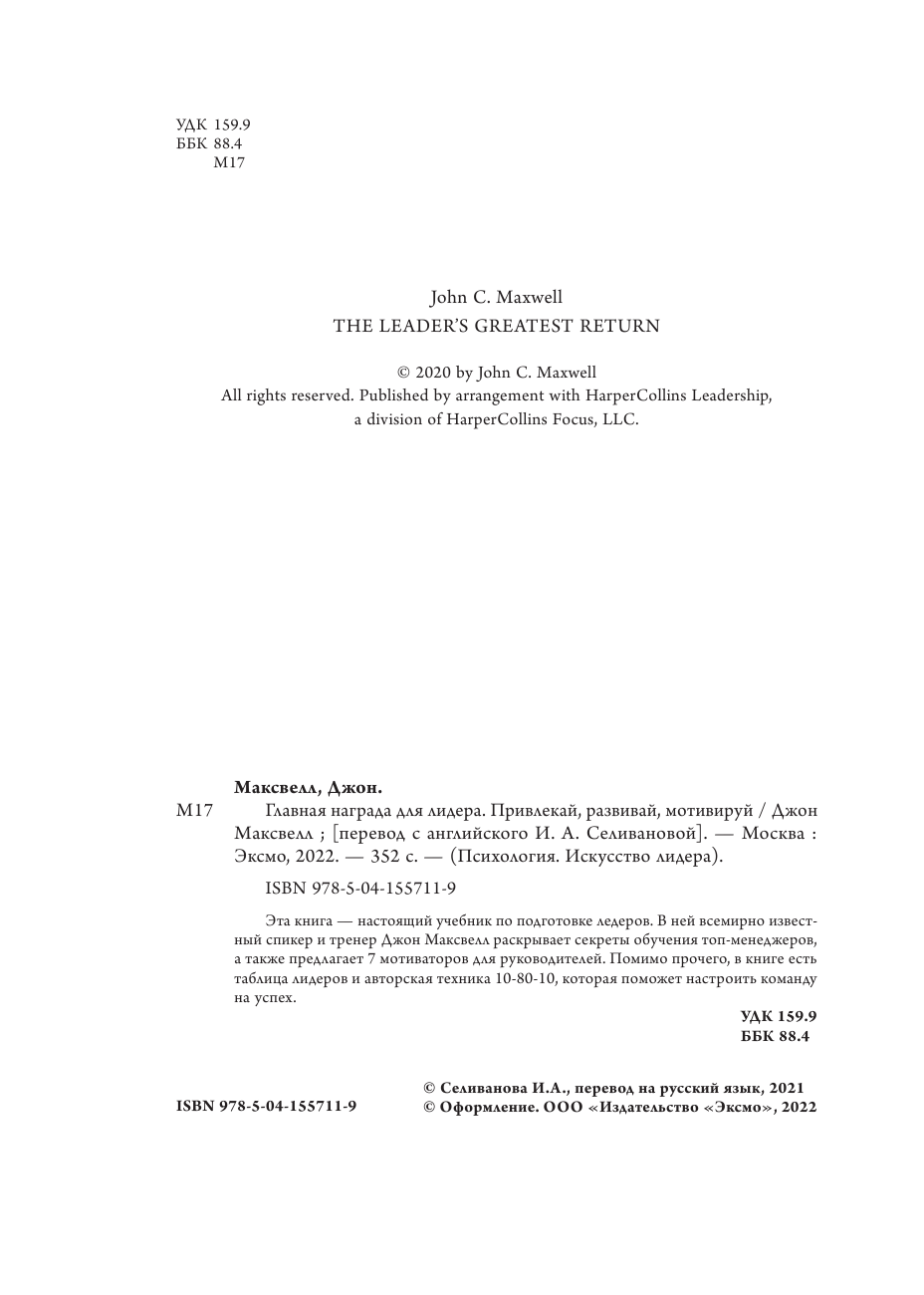 Главная награда для лидера. Привлекай. Развивай. Мотивируй (Максвелл Джон С.); ООО "Издательство "Эксмо", 2022