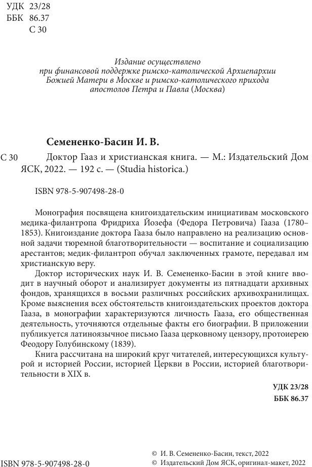 Доктор Гааз и христианская книга (И. В. Семененко-Басин); Языки Славянской Культуры, 2022