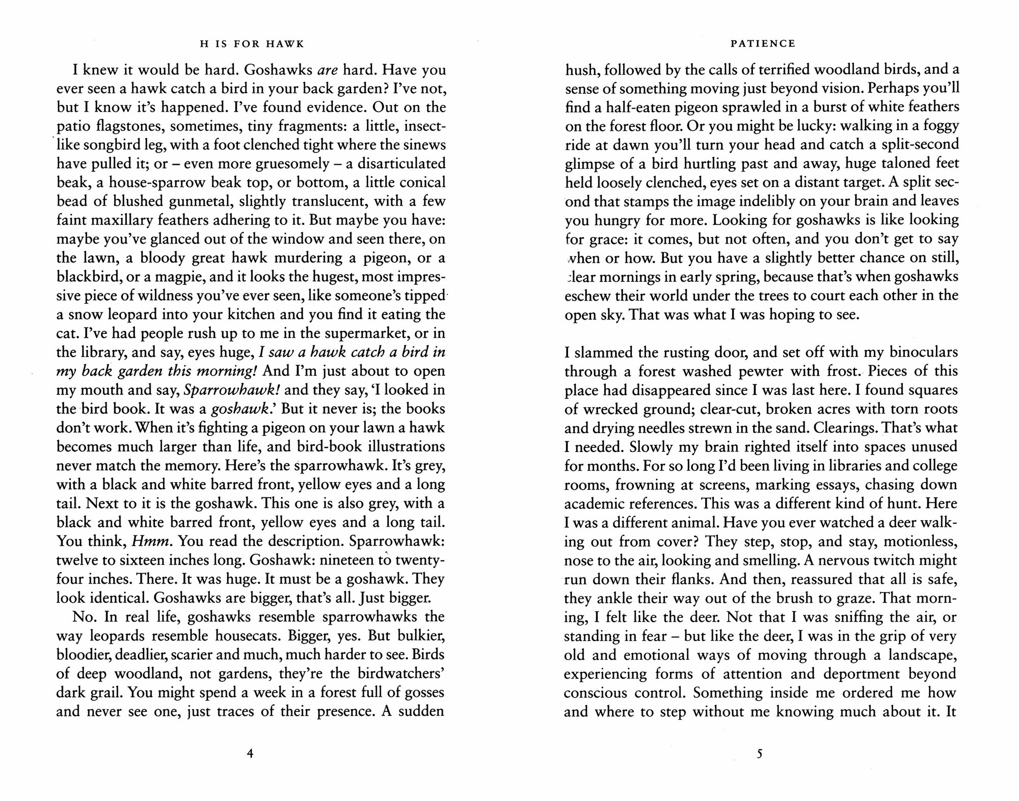 As a child, Helen Macdonald was determined to become a falconer, learning the arcane terminology and reading all the classic books. Years later, when her father died and she was struck deeply by grief, she became obsessed with the idea of training her own goshawk. She bought Mabel for Ј800 on a Scottish quayside and took her home to Cambridge, ready to embark on the long, strange business of trying to train this wildest of animals. H is for Hawk is an unflinchingly honest account of Macdonald's struggle with grief during the difficult process of the hawk's taming and her own untaming. This is a book about memory, nature and nation, and how it might be possible to reconcile death with life and love.