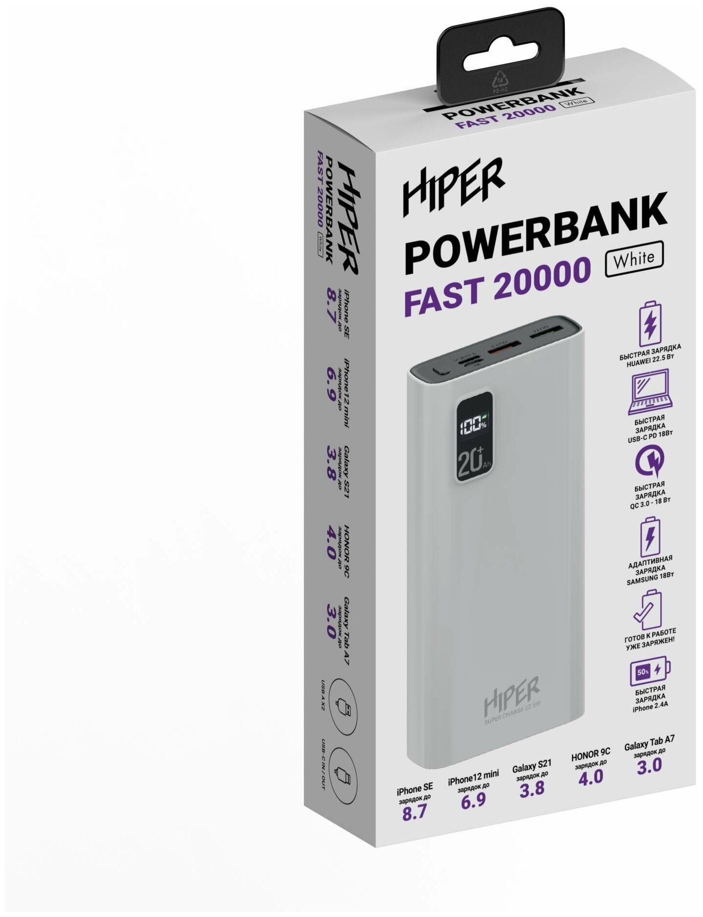 Внешний аккумулятор Hiper Fast 20000 20000mAh 5A QC PD 2xUSB белый (FAST 20000 WHITE)