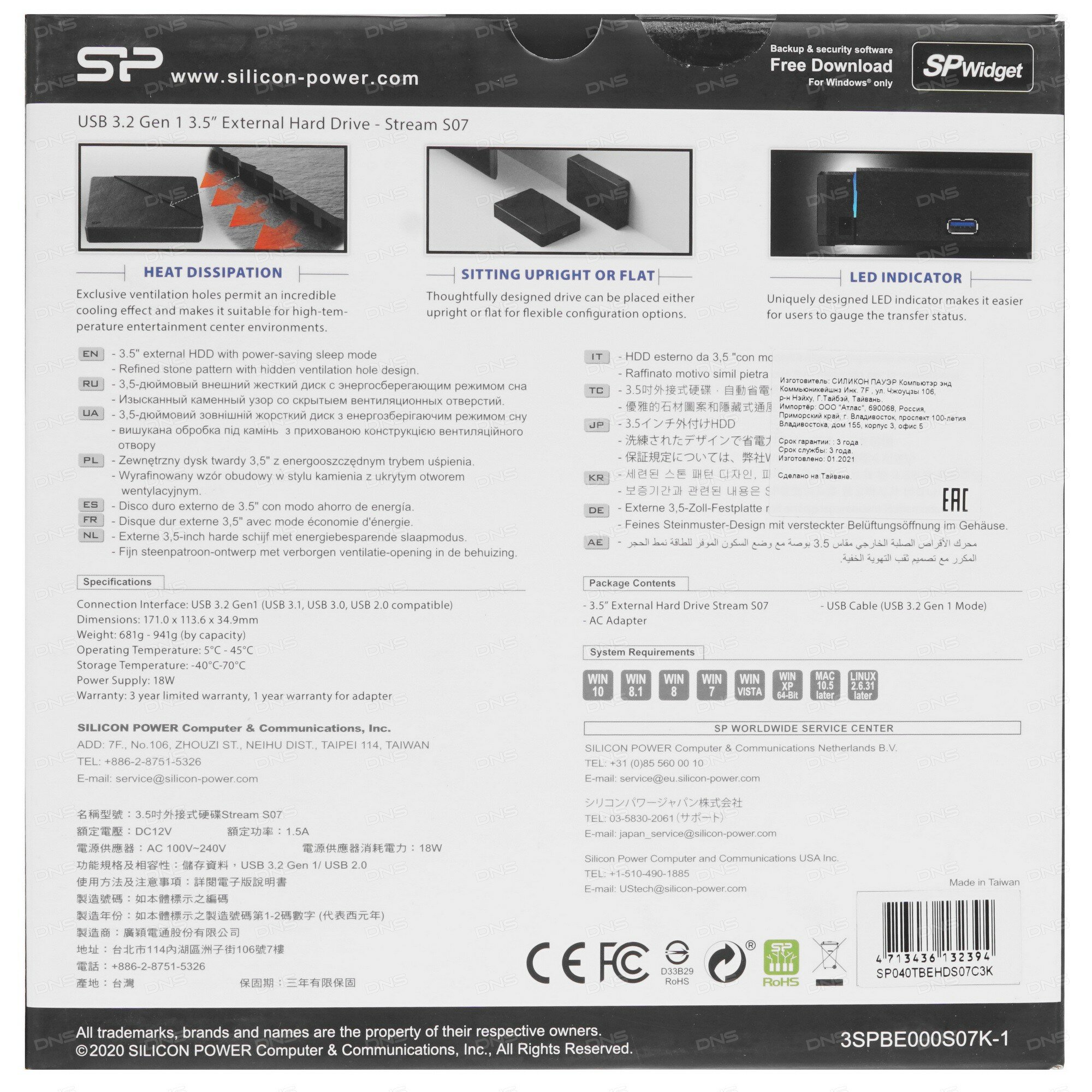 4 ТБ Внешний HDD Silicon Power Stream S07 [SP040TBEHDS07C3K] станет незаменимым инструментом для регулярной работы с большими массивами данных в домашней или офисной среде. Данная модель основана на высококачественных компонентах и передовых технологиях, благодаря чему обеспечивается высокий уровень быстродействия и отказоустойчивость. Также устройство отличается универсальностью и может использоваться вместе с различными операционными системами. Внешний Silicon Power Stream S07 выполнен в пластиковом корпусе формата 3.5” и обладает лаконичным дизайном, благодаря которому может легко сочетаться с другими устройствами. Для подключения используется USB-A версии 3.2 Gen 1. Также диск использует дополнительное питание, для которого предусмотрен блок питания из комплекта поставки. Также вместе с диском поставляется фирменная программа SP Widget для менеджмента файлов.
