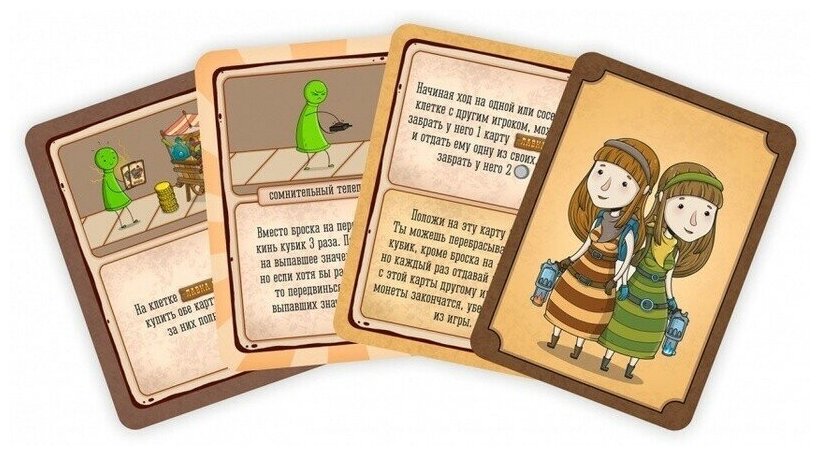 | Комплектация | • 10 карт «Лавка Джо» • 10 карт «Та-Дам!» • 10 карт «Хорошо/Плохо» • 7 карт способностей • карта правил • 2 жетона персонажа • 2 подставки |