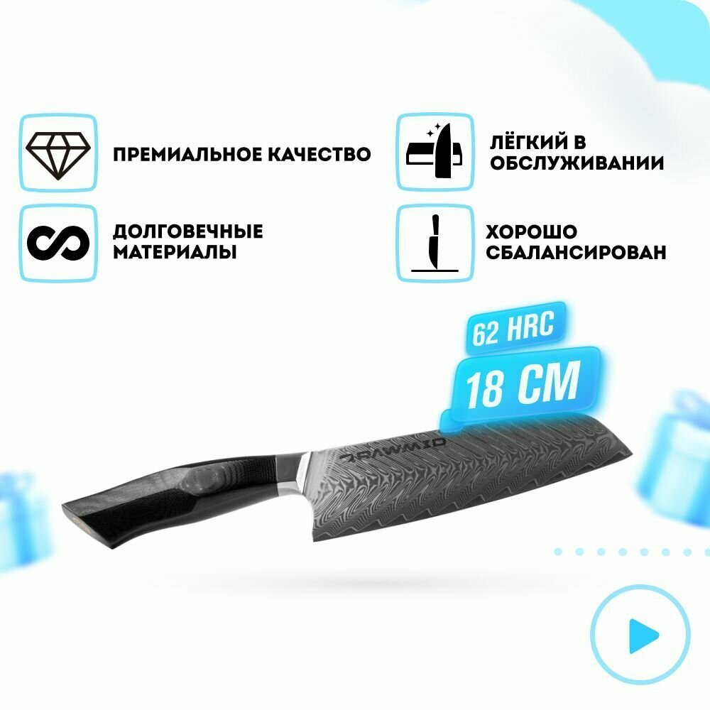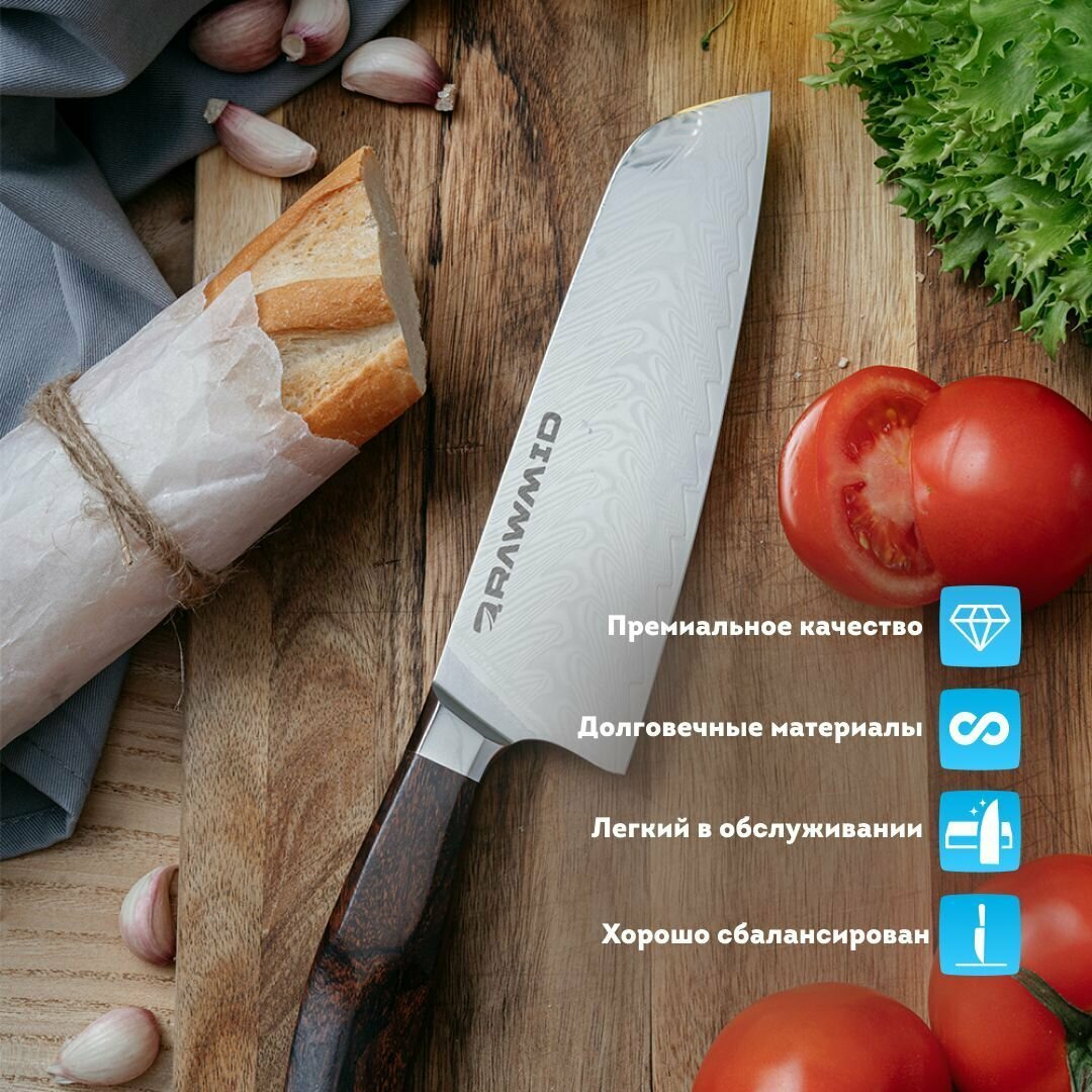 Сервис сравнения цен СкидкаГИД предлагает сравнить цены на товар «Универсальный нож «Сантоку» RAWMID RLK-18 plexiglass 18 см ручка из стеклотекстолита»
