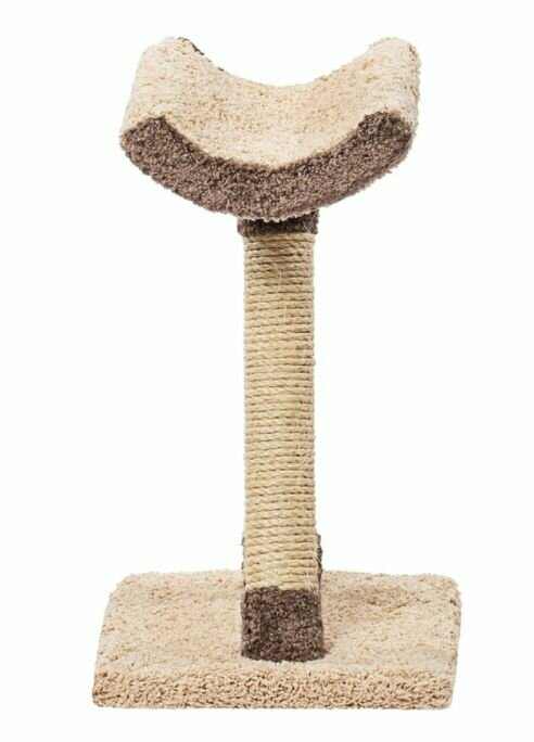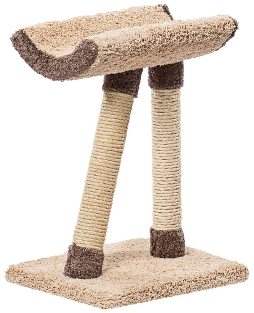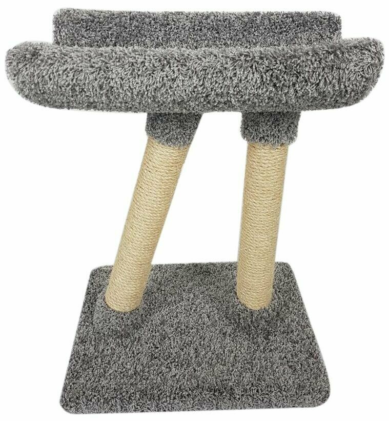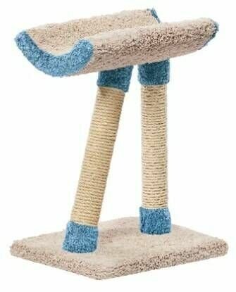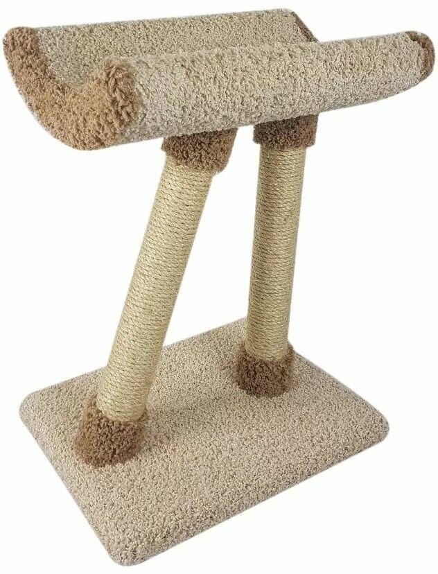 Интересным подарком для пушистого любимца станет когтеточка «Косая ножка». Это компактная модель, которая занимает минимум свободного места в комнате, при этом выполняя роль уютной и вместительной лежанки. Ваша кошка с удовольствием будет на ней отдыхать от важных дневных дел и спать по ночам! Лежанка находится на высоте — на двух ножках-столбиках, одна из которых установлена под наклоном, откуда и взялось название комплекса — «Косая ножка». Котики будут с большим удовольствием точить коготки об обмотку столбиков, заботясь о своих лапках.