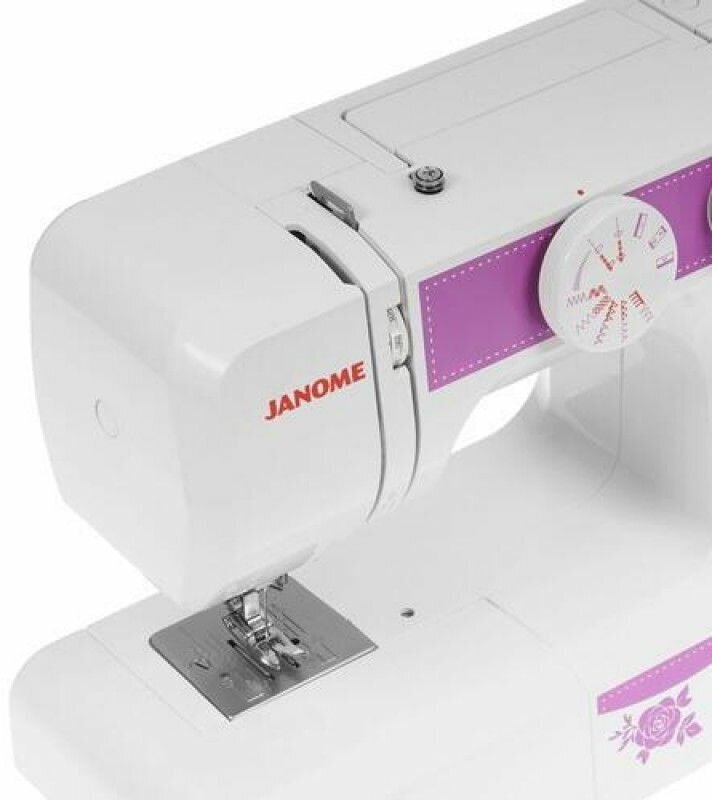 Швейная машина Janome удобна в пошиве изделий различной сложности и ремонте одежды. Она выполняет 15 операций и обметывает петли в полуавтоматическом режиме. Этой модели можно доверить любую ткань — качество строк неизменно.
