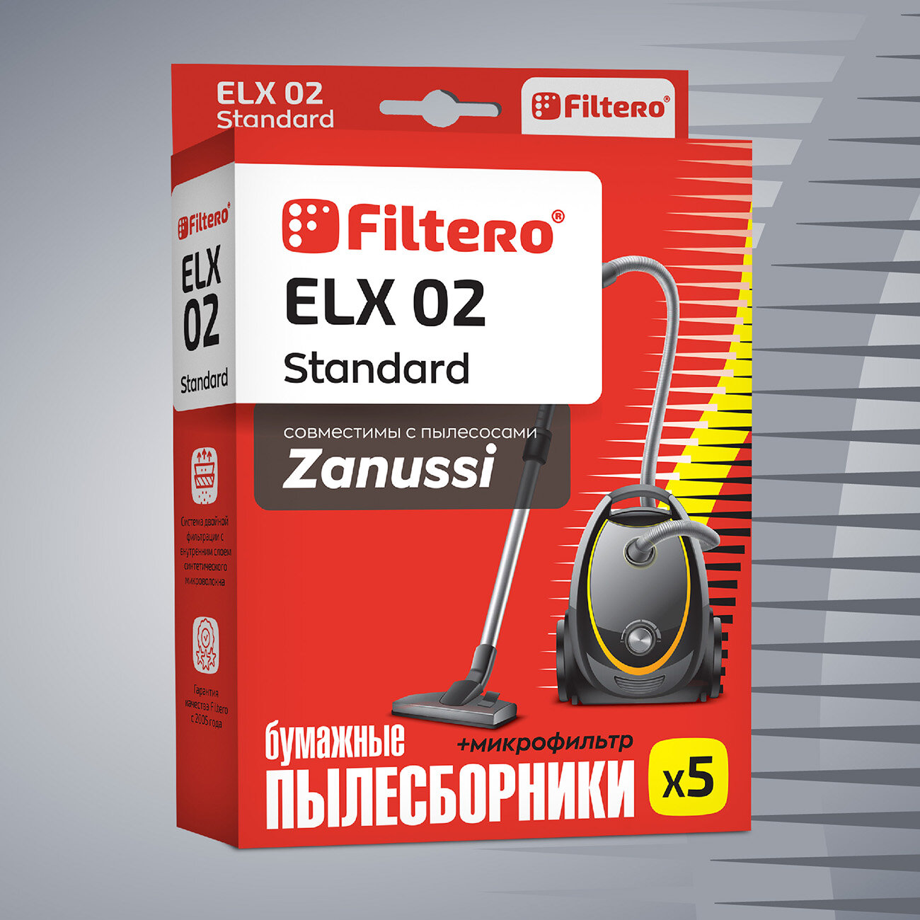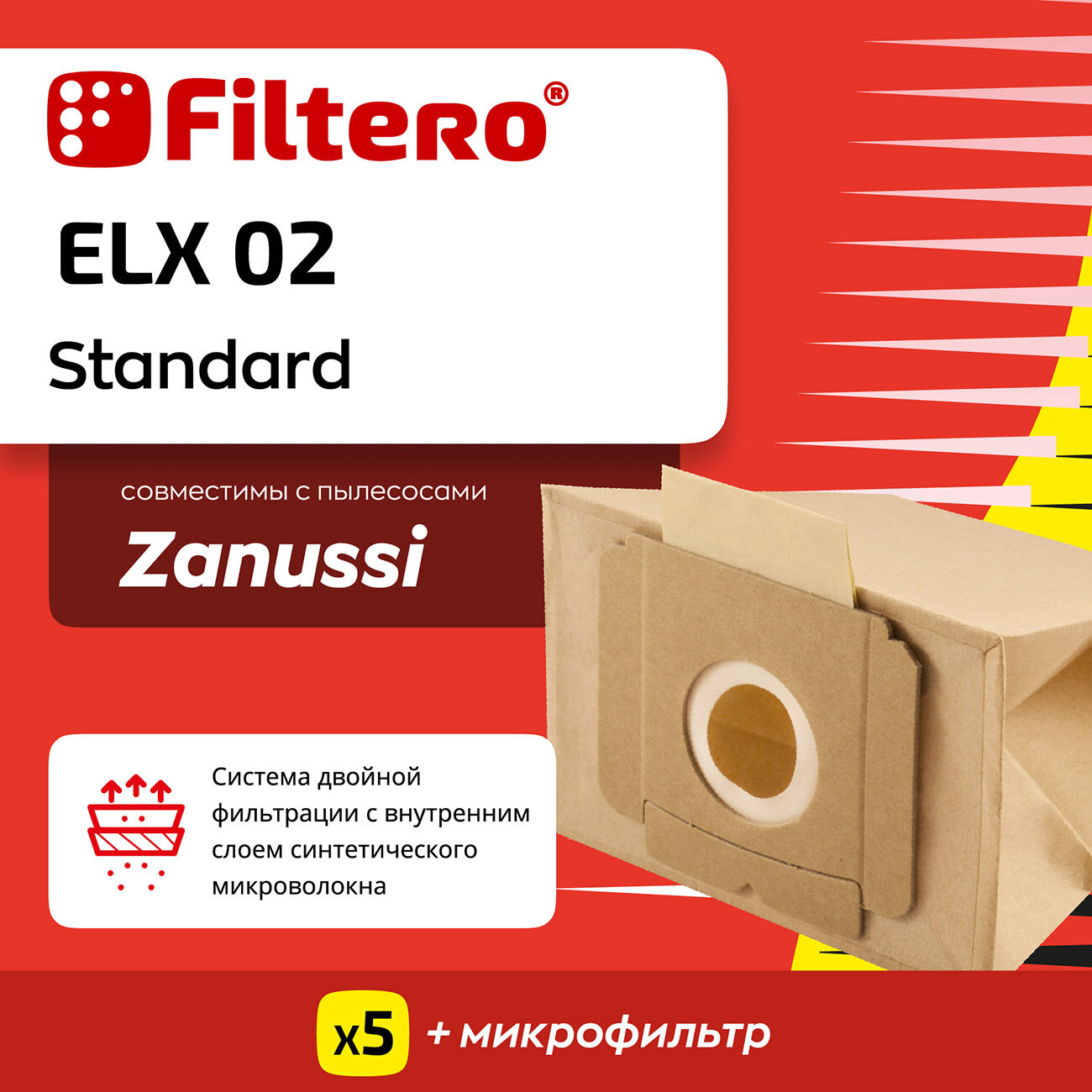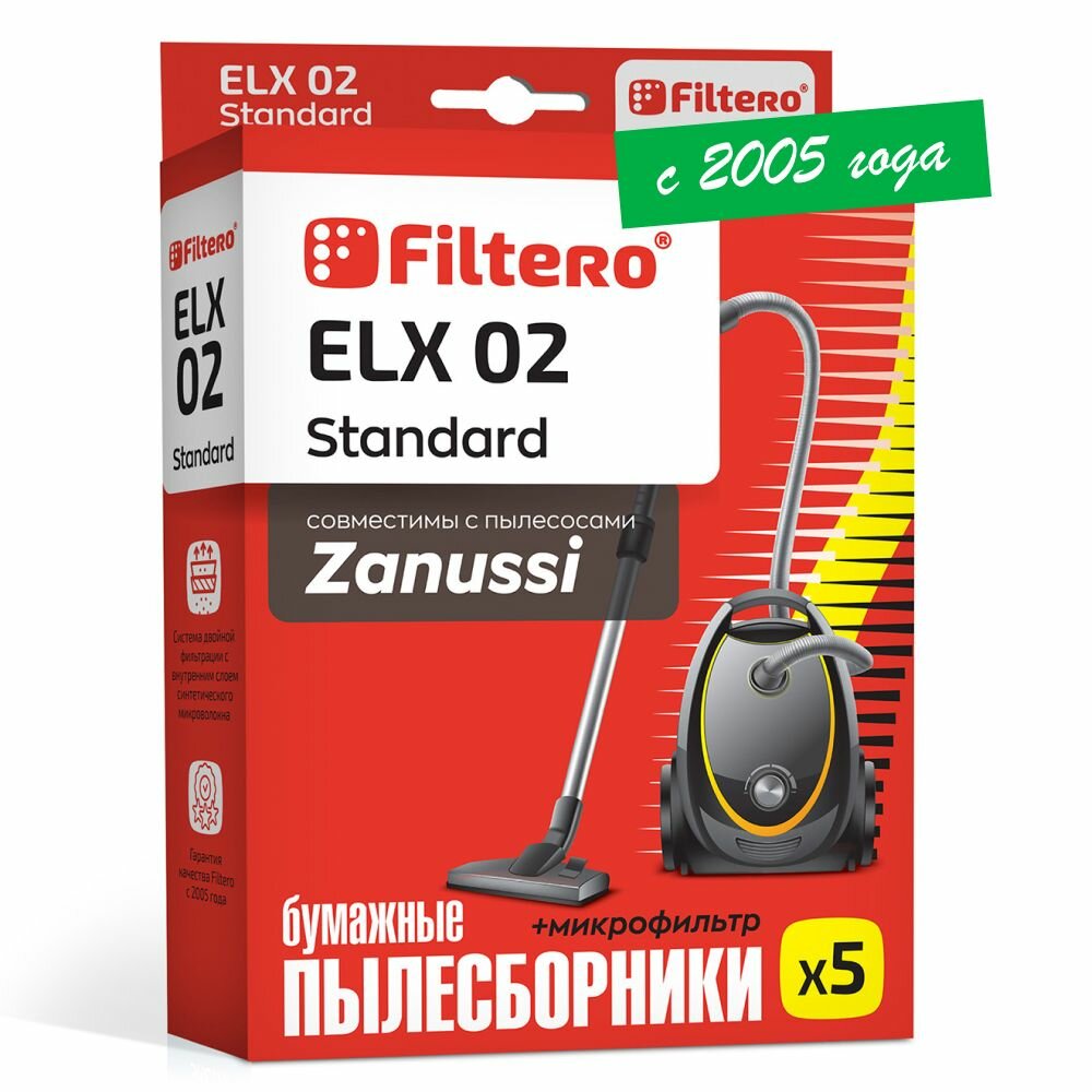 Пылесборники FILTERO ELX 02 Standard двухслойные 5 шт. для пылесосов DAEWOO AEG ELECTROLUX THOMAS ZANUSSI ELX 02 (5+Ф) STANDARD