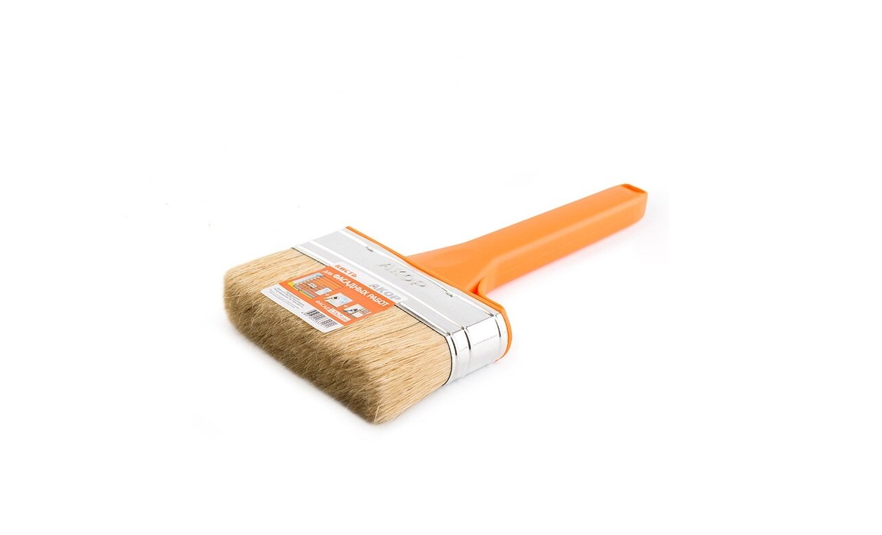 Кисть применяется для фасадных работ. Кисти разработаны для работ с большими площадями. Продукт выполнен из густой, плотной набивки по сравнению с прочими кистями. Щетина выполнена из натурального волокна. Рабочая часть надежно закреплена бандажом из стали. В пластиковой рукоятке имеется отверстие для подвешивания и специальный крючок для крепления на банку.