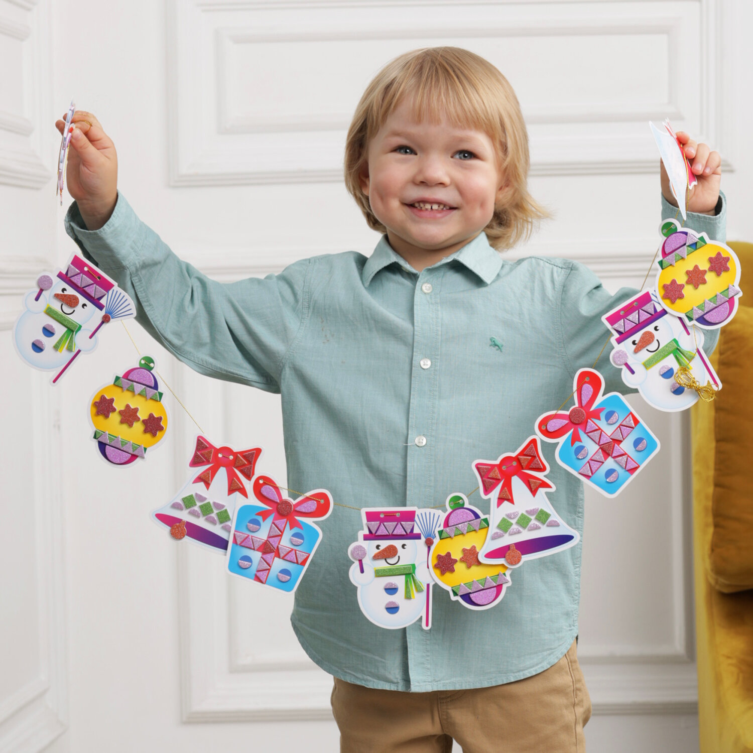 Перед вами набор для детского творчества, который поможет ребёнку самостоятельно сделать новогоднюю гирлянду и украсить дом к празднику. Гирлянда, сделанная своими руками - принесет радость творчества и станет поводом для гордости перед гостями.