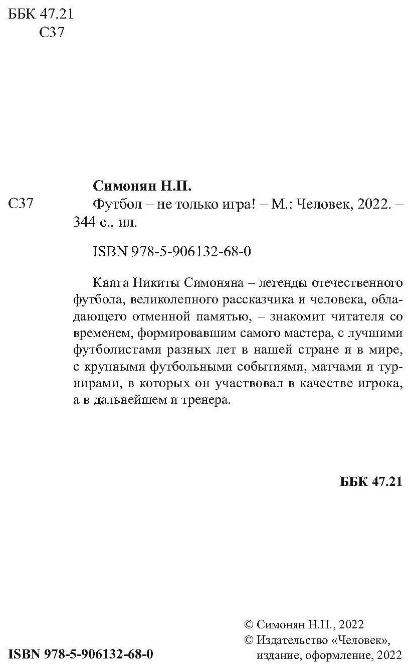 Книга: Футбол - не только игра! (Симонян Никита Павлович); Человек, 2022