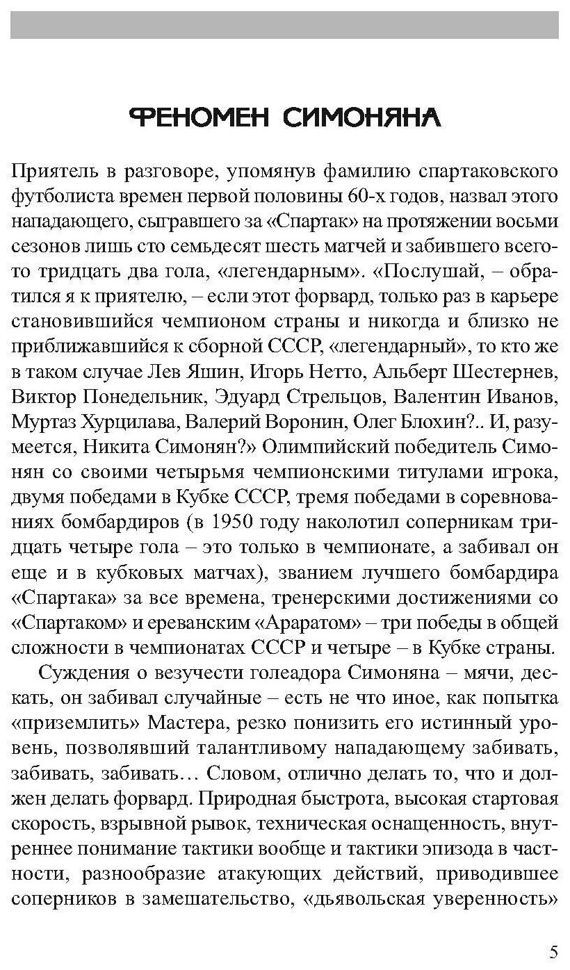 Книга Никиты Симоняна — легенды отечественного футбола, великолепного рассказчика и человека, обладающего отменной памятью, — знакомит читателя со временем, формировавшим самого мастера, с лучшими футболистами разных лет в нашей стране и в мире, с крупными футбольными событиями, матчами и турнирами, в которых он участвовал в качестве игрока, а в дальнейшем и тренера.