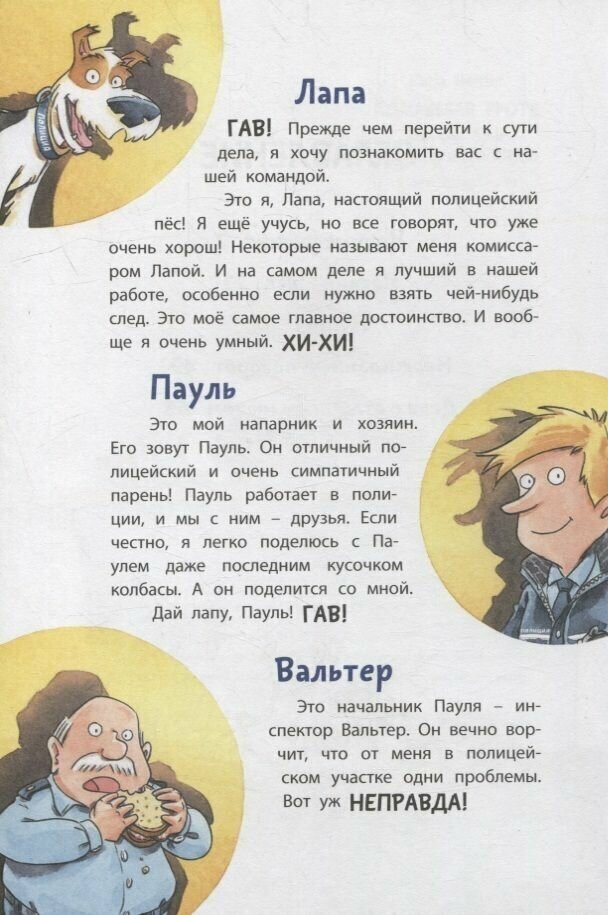 Познакомьтесь с самым очаровательным, весёлым и умным полицейским псом на свете! Комиссар Лапа и его напарник Пауль расследуют дерзкое преступление – в торговом центре на глазах десятков свидетелей исчезает драгоценное бриллиантовое колье. Будьте уверены, если за дело берётся комиссар Лапа, никакие уловки не помогут преступнику скрыться!