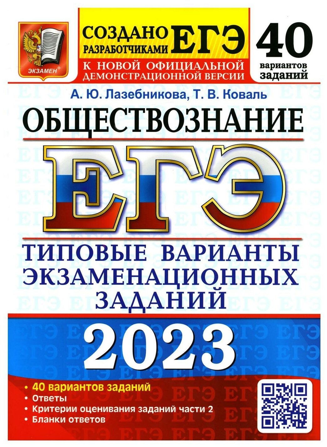 ЕГЭ 2023 Обществознание Типовые варианты экзаменационных заданий 40 вариантов заданий (Лазебникова Анна Юрьевна, Коваль Татьяна Викторовна); Экзамен, 2023