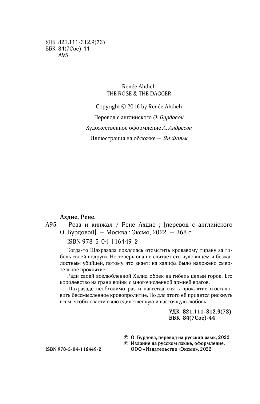 Книга: Роза и кинжал (Рене Ахдие); Эксмо, Like Book, Редакция 1, 2022