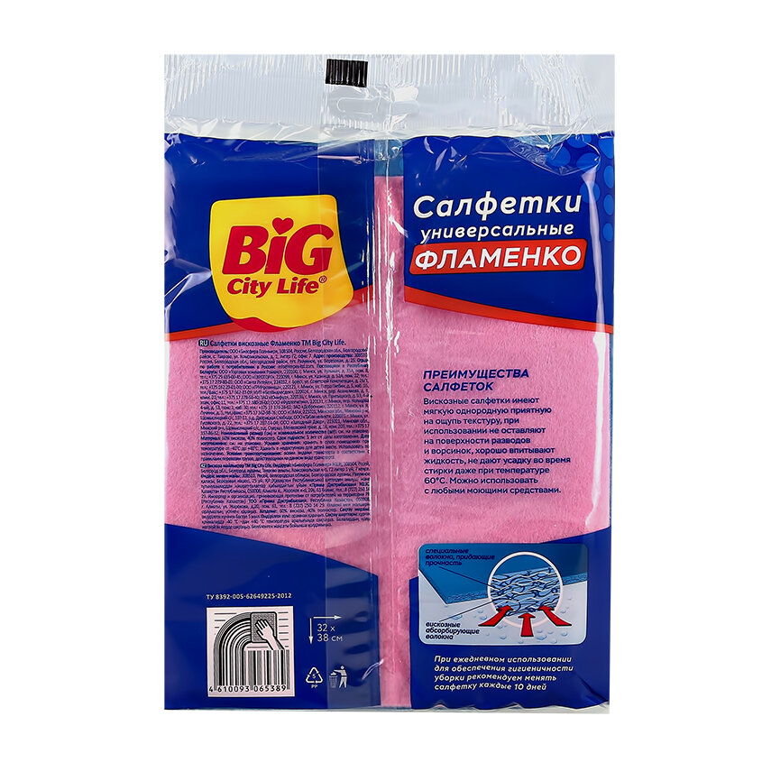 Салфетки для уборки Big City Life Фламенко вискозные 3шт в ассортименте