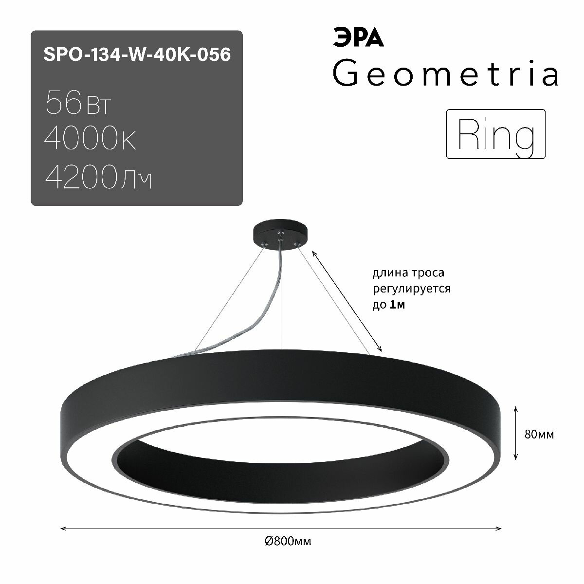 Подвесной светодиодный cветильник Geometria ЭРА Ring 56Вт 4000К белый Б0050564 SPO-134-W-40K-056 Geometria