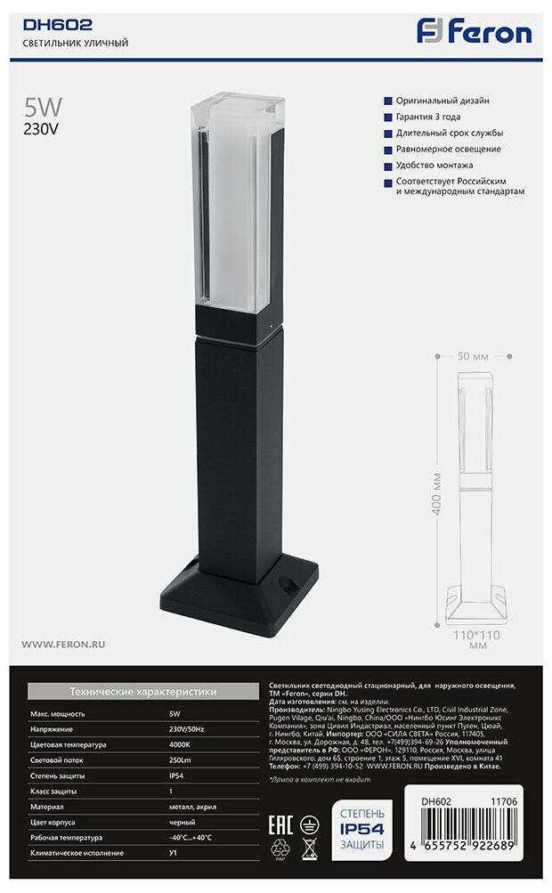 Уличный светодиодный светильник Feron Дубай DH602 11706 Дубай