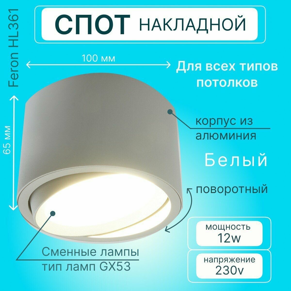 Точечный светильник Feron HL361 12W 230V GX53 41994 (белый) 41994 HL361