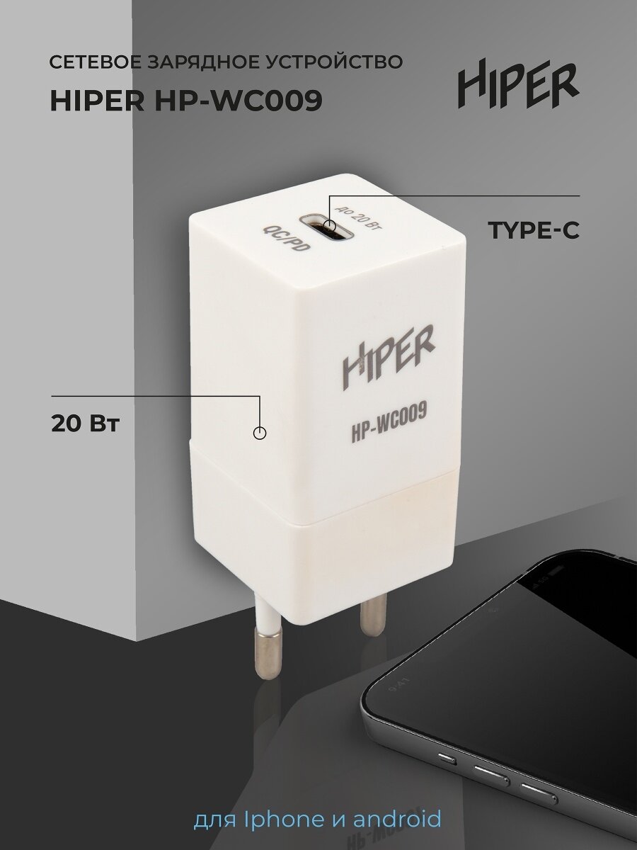 HIPER СЗУ 20 Вт, QC/PD, TYPE-C, белый (HP-WC009)