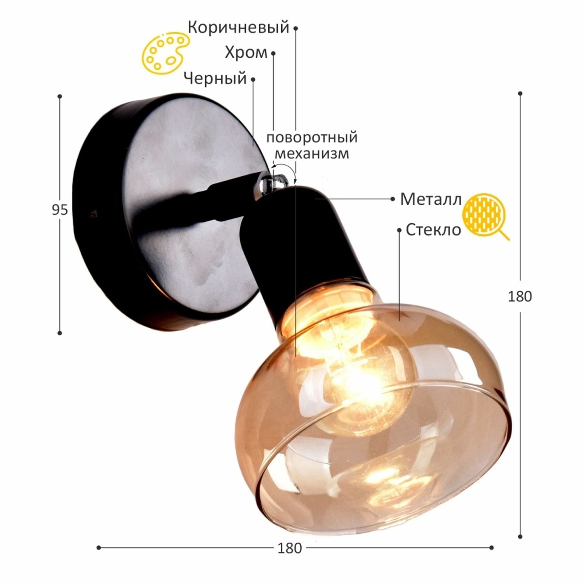 спот РОССВЕТ Аронник 1х60Вт Е14 металл черный (РС21853 BK+CR/1C)