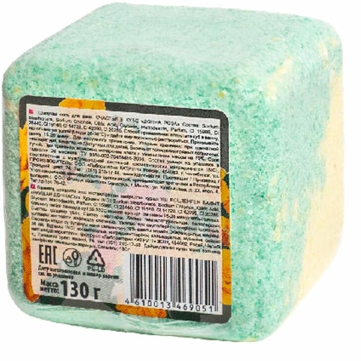 | Полное наименование | Лаборатория Катрин, Россия Шипучая соль для ванн "Счастье в кубе" с ароматом розы, 130 г |