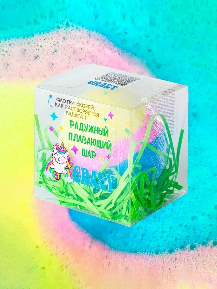 Плавающие шары! Да, именно плавающие, они не погружаются в воду, они плавают, оставляя яркие красочные пенные разводы прямо на поверхности. Для вас мы продумали все до мелочей: на каждой упаковке вы найдёте QR-код, с помощью которого сможете подробно рассмотреть процесс растворения.