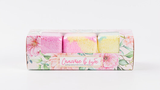 Набор шипучей соли Laboratory Katrin Счастье в кубе 390г 3шт*130г