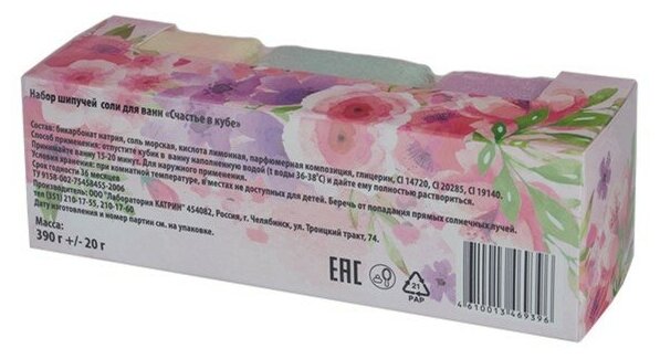 | Полное наименование | Соль для ванн Лаборатория Катрин Счастье в кубе 130 г х 3 шт |