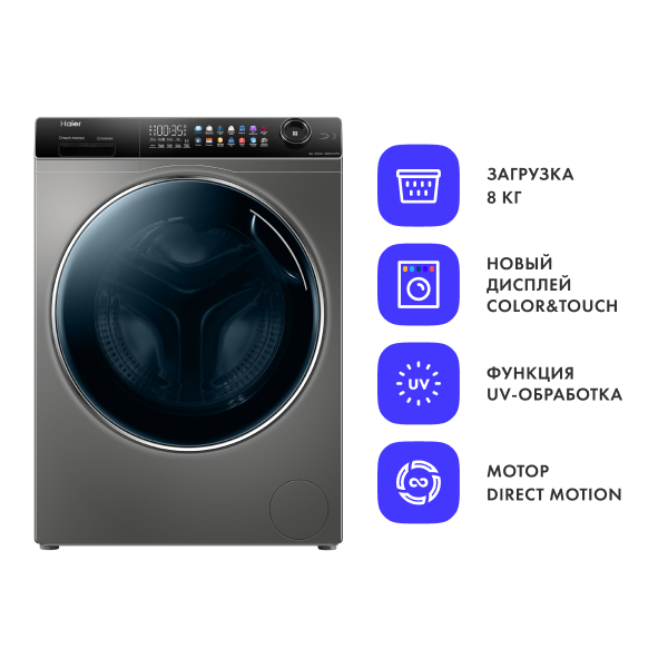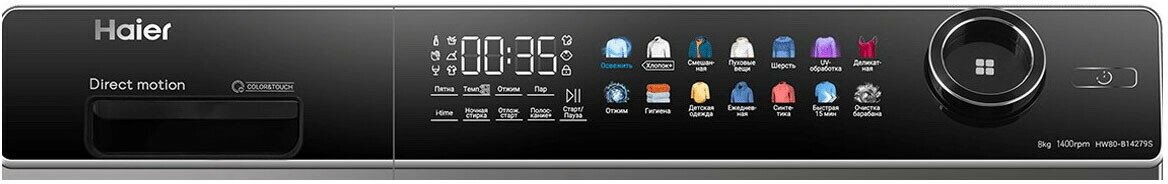 | Технологии | Direct Motion (Haier), Pillow (Haier), Aquastop (Haier), Antistain (Haier), Color&Touch (Haier) |