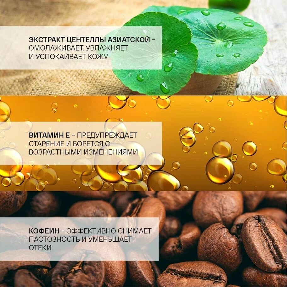 Многофункциональный крем для кожи вокруг глаз. Эффективно борется с признаками старения и усталости: разглаживает мелкие морщины, снимает отечность, уменьшает темные круги и возвращает сияние. Комплекс Eye beautifier на основе натуральных пептидов улучшает питание кожи вокруг глаз, стимулируя кровообращение. Комплекс Skin tightener помогает достигнуть моментального лифтинга, образуя на поверхности эпидермиса проницаемую пленку. Комплекс Botanical hydrator обеспечивает быстрое увлажнение, восстанавливает защитную функцию кожи. Экстракт центеллы азиатской стимулирует микроциркуляцию, оказывает омолаживающее, увлажняющее и успокаивающее действие.