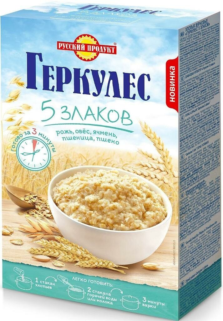 Сколько хорошего может поместиться в одной ложке каши? Оказывается, довольно много. Геркулес "5 Злаков" - это смесь тщательно отобранных злаковых хлопьев для получения благотворного и вкусного блюда! Комплекс витаминов и минералов, содержащихся в данной каше, укрепляет иммунитет, улучшает обмен веществ, стабилизирует давление и улучшает работу кишечника, а также заряжает энергией и хорошим настроением на весь день!